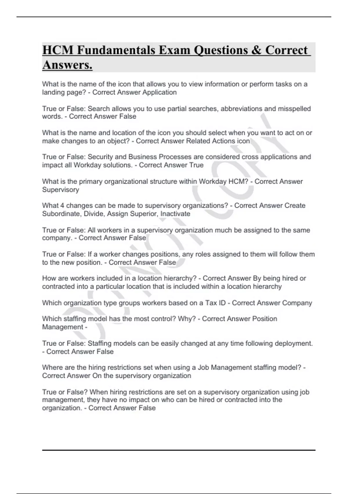 HCM Fundamentals Exam Questions & Correct Answers.HCM Fundamentals Exam Questions & Correct Answers.