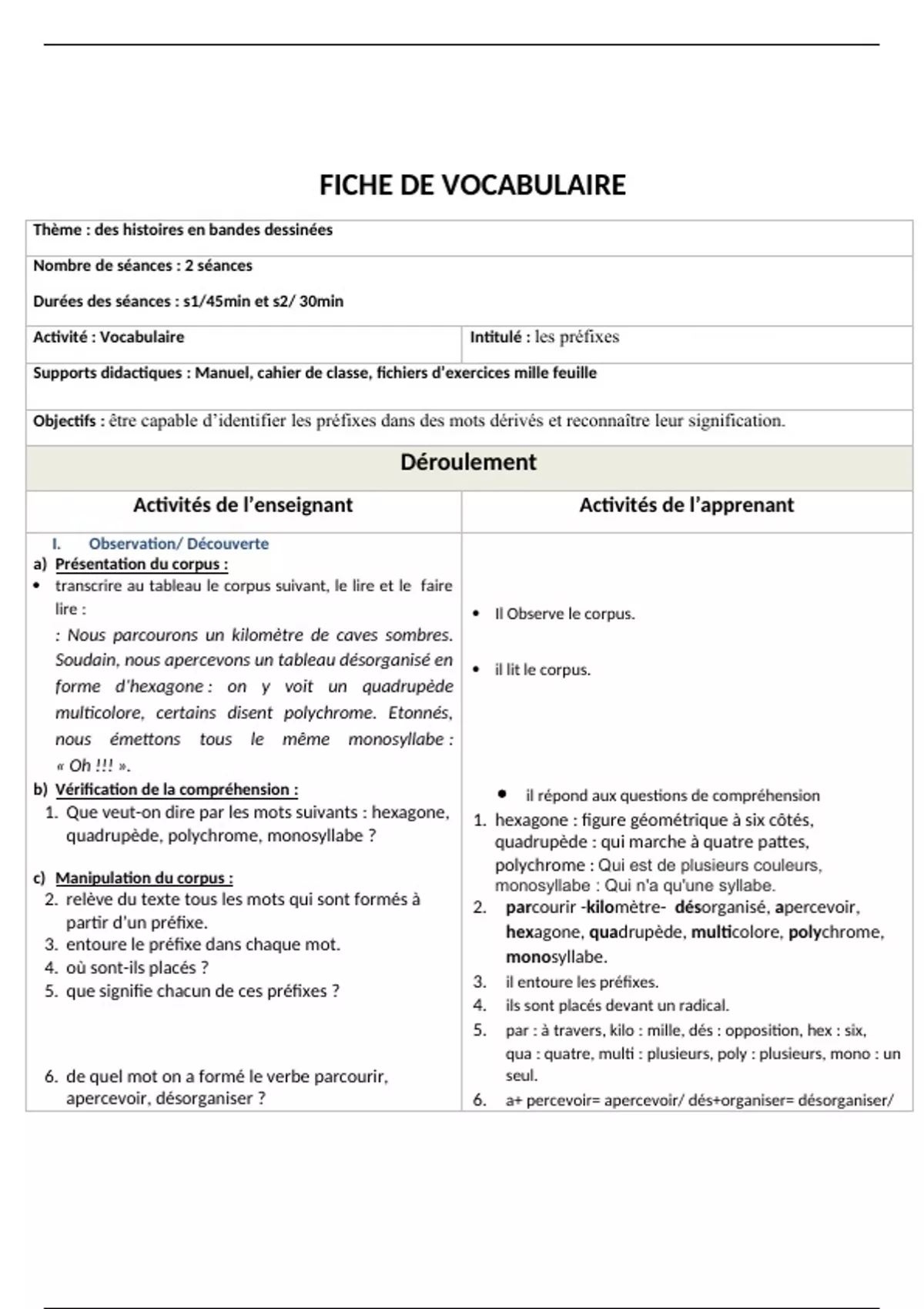 Objectifs : être capable d’identifier les préfixes dans des mots dérivés et reconnaître leur signification.