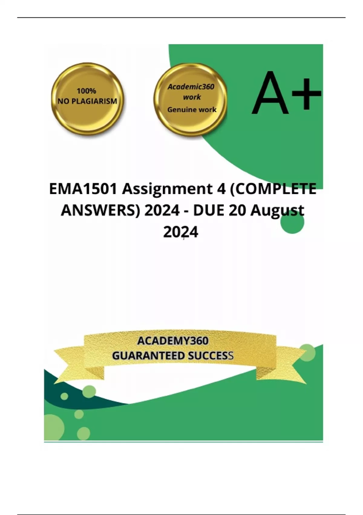 EMA1501 Assignment 4 (COMPLETE ANSWERS) 2024 - DUE 20 August 2024 ; 100% TRUSTED Complete, trusted solutions and explanations.