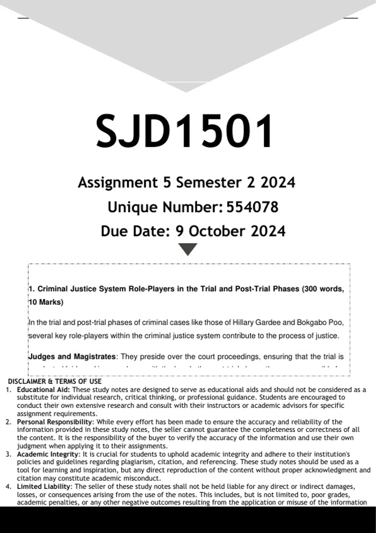 SJD1501 Assignment 5 (ANSWERS) Semester 2 2024 - DISTINCTION GUARANTEED