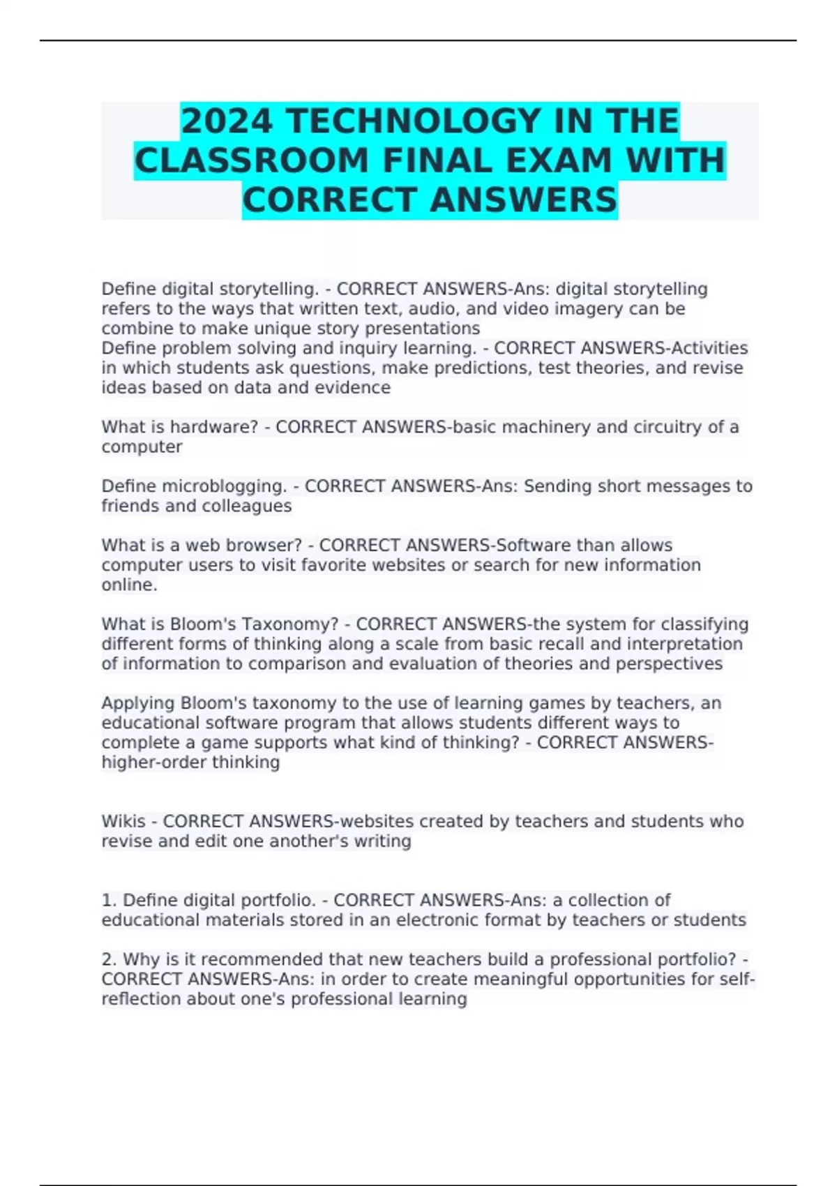 2024 TECHNOLOGY IN THE CLASSROOM FINAL EXAM WITH CORRECT ANSWERS