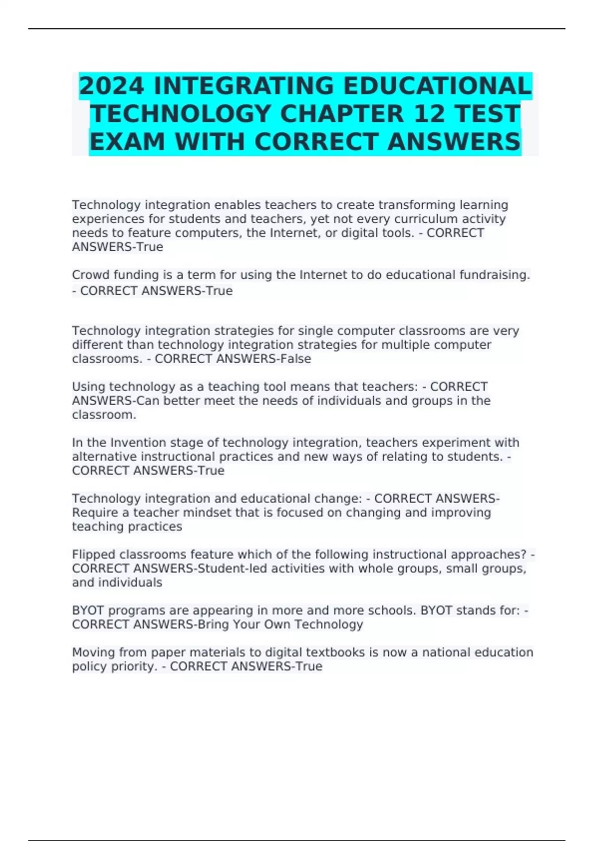 CORRECT ANSWERS-Bring Your Own Technology