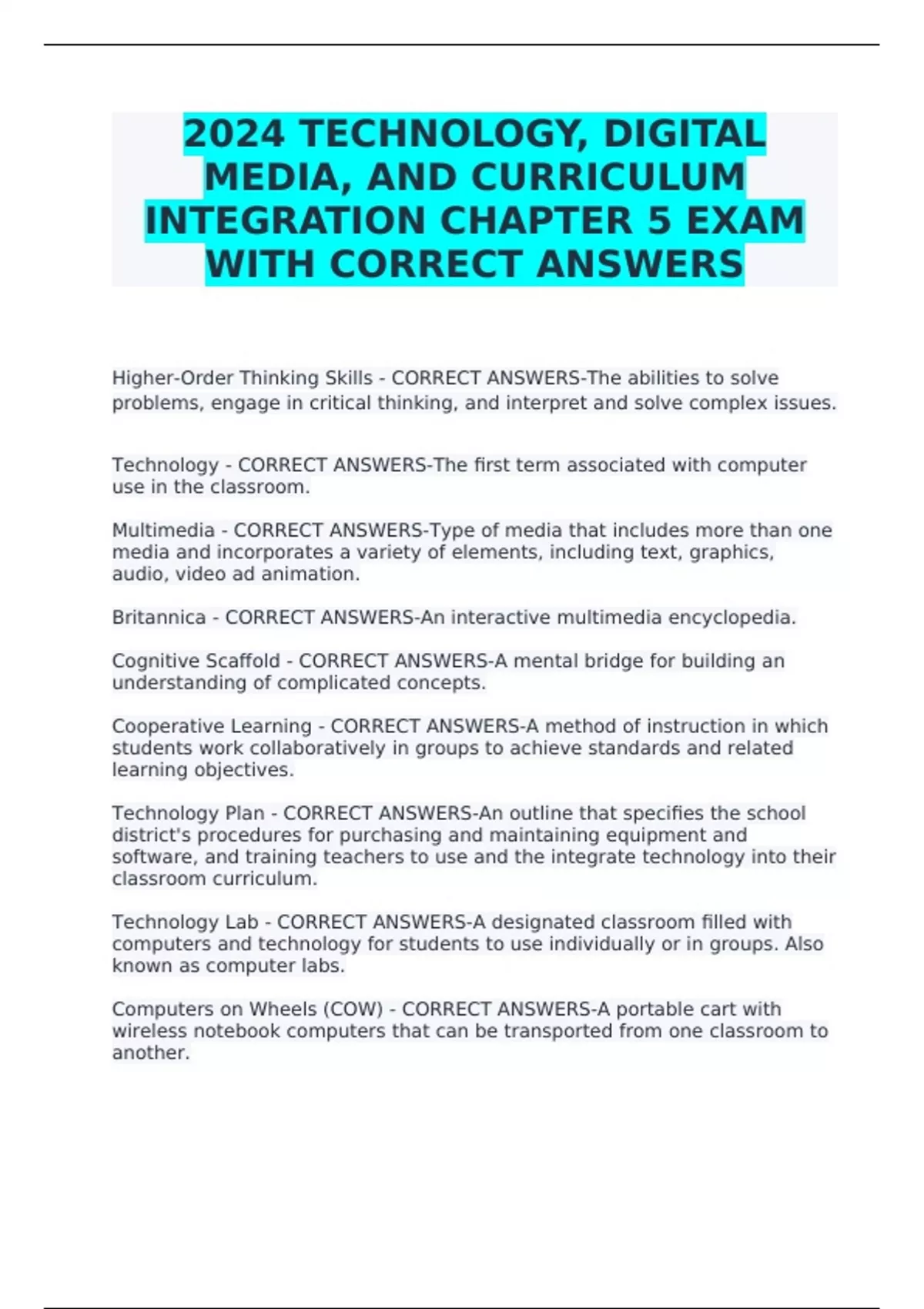 Multimedia - CORRECT ANSWERS-Type of media that includes more than one