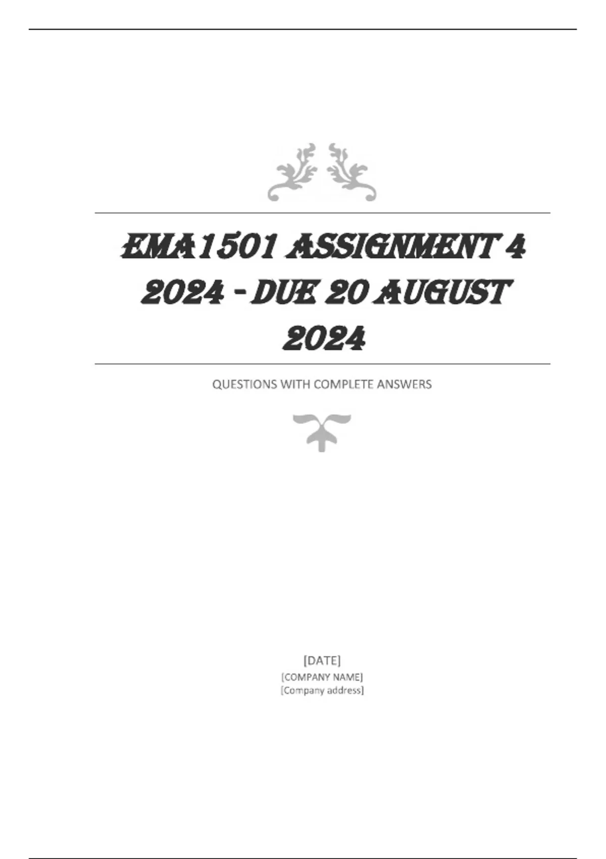 EMA1501 Assignment 4 2024 - DUE 20 August 2024 COMPLETE ANSWERS
