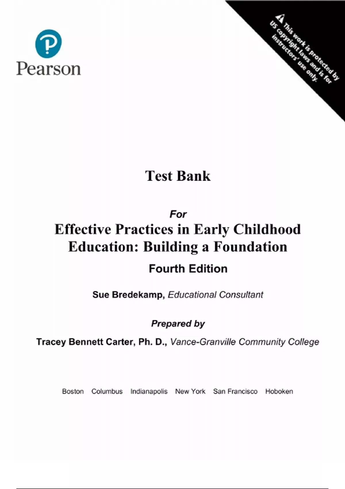 Test Bank For Effective Practices in Early Childhood Education Building a Foundation 4th Edition By Sue Bredekamp (All Chapters, 100% Original Verified, A+ Grade)
