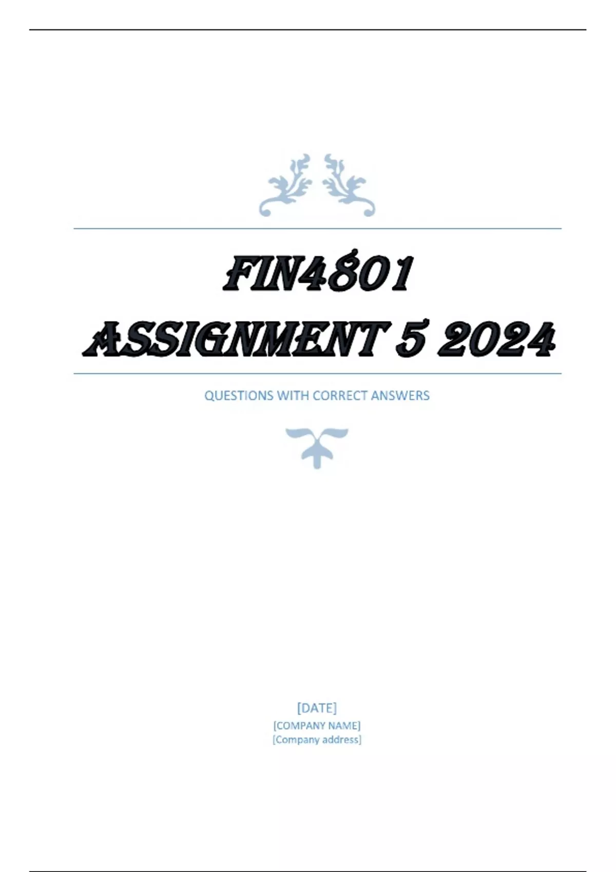 FIN4801 Assignment 5 (DETAILED ANSWERS) 2024