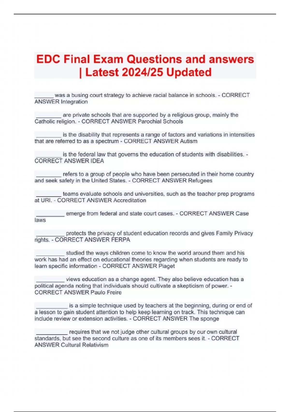 EDC Final Exam Questions and answers | Latest 2024/25 Updated