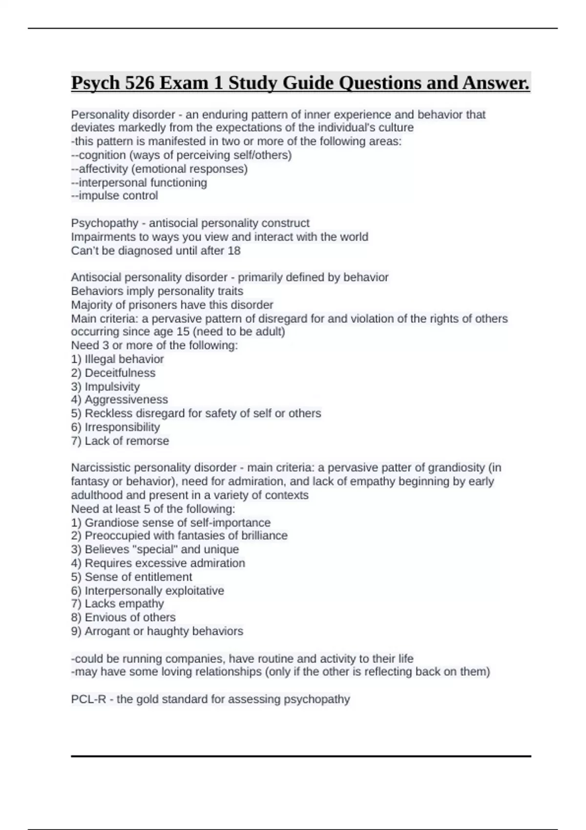 Psych 526 Exam 1 Study Guide Questions and Answer.