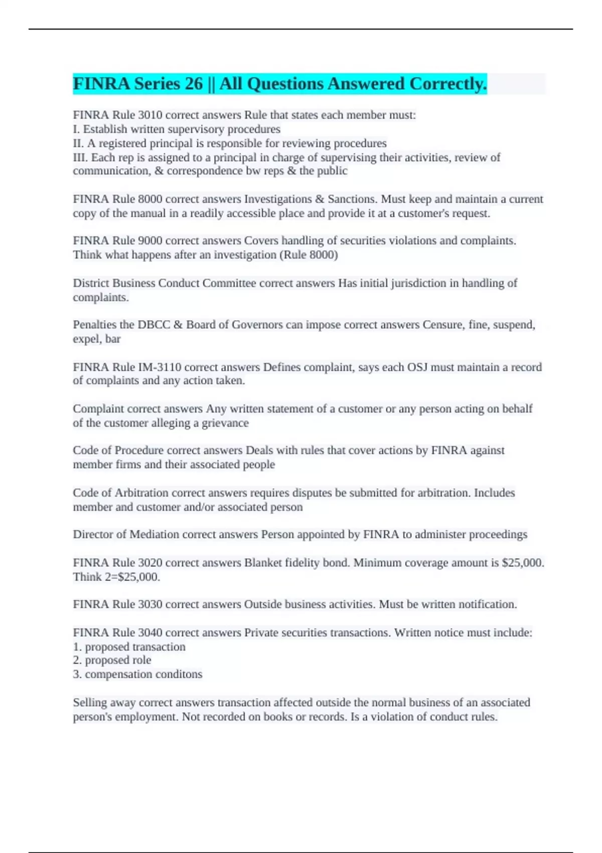 FINRA Series 26 || All Questions Answered Correctly.