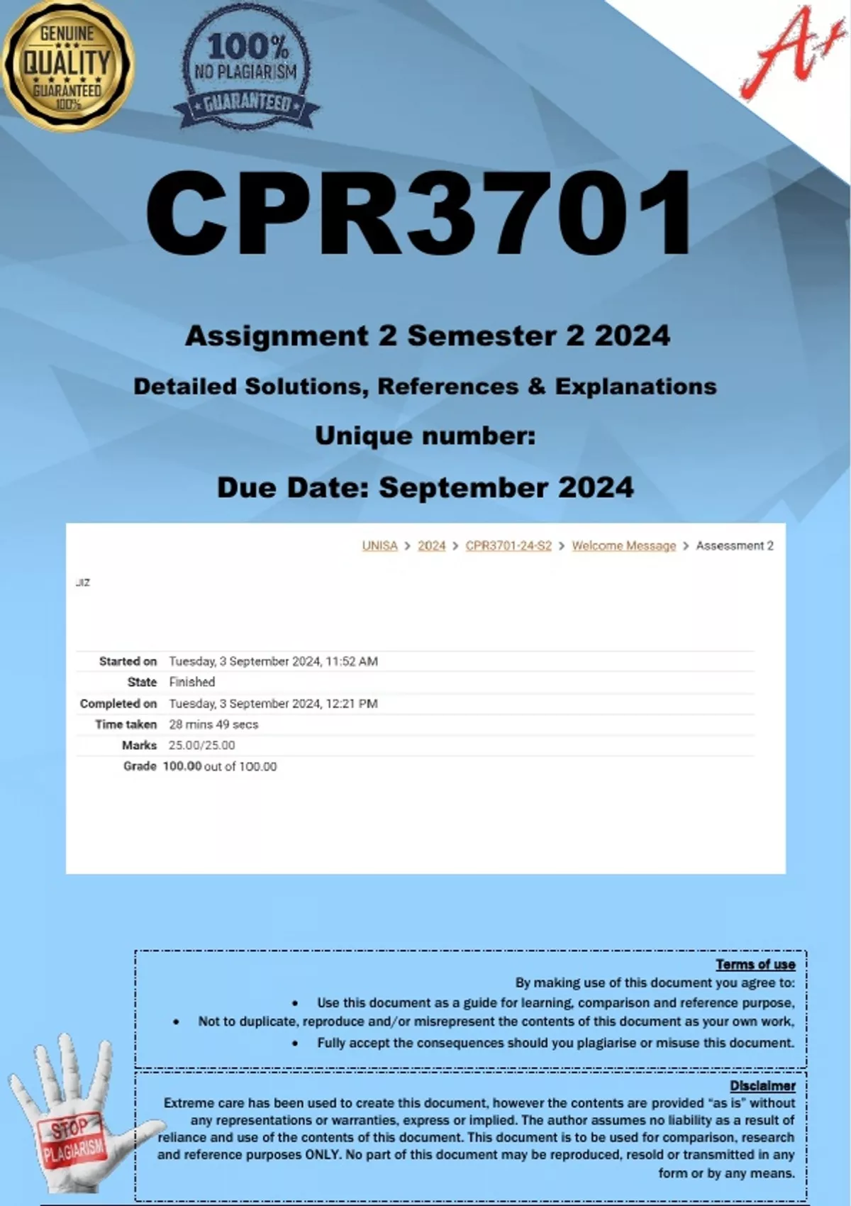 UNISA  2024  CPR3701-24-S2  Welcome Message  Assessment 2
