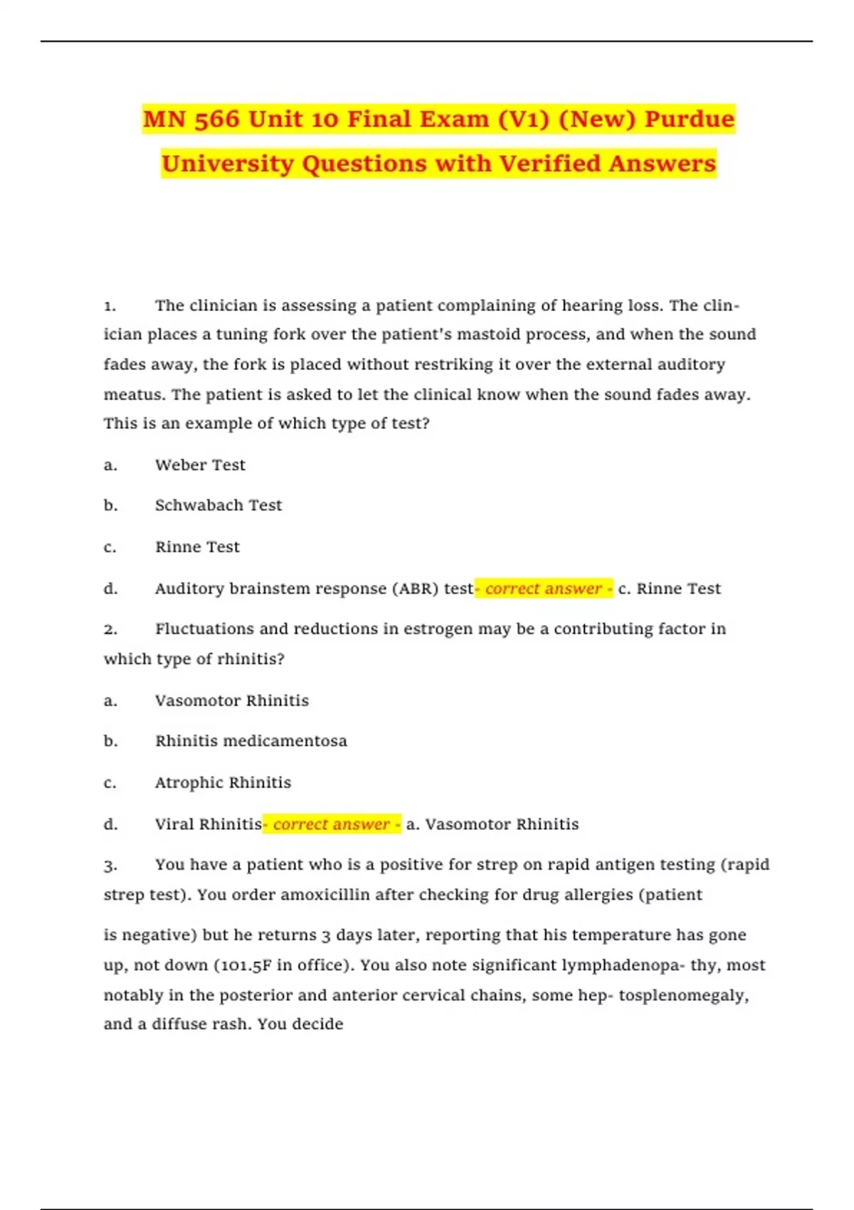 d. Auditory brainstem response (ABR) test- correct answer - c. Rinne Test