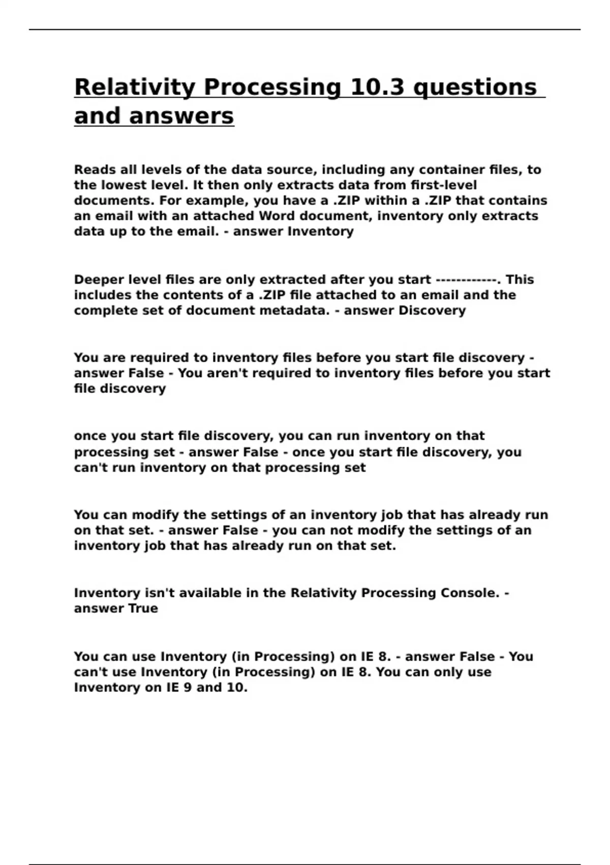You can use Inventory (in Processing) on IE 8. - answer False - You