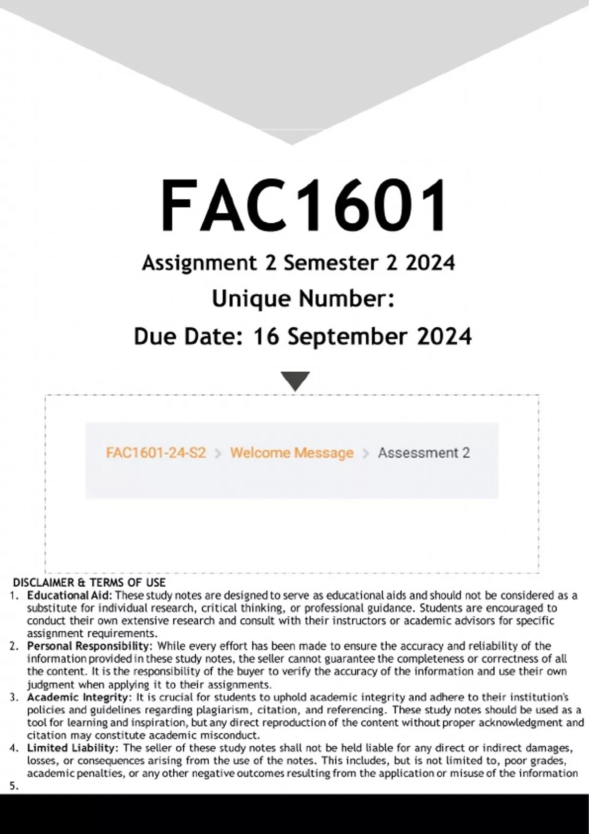 FAC1601 Assignment 2 (ANSWERS) Semester 2 2024 - DISTINCTION GUARANTEED