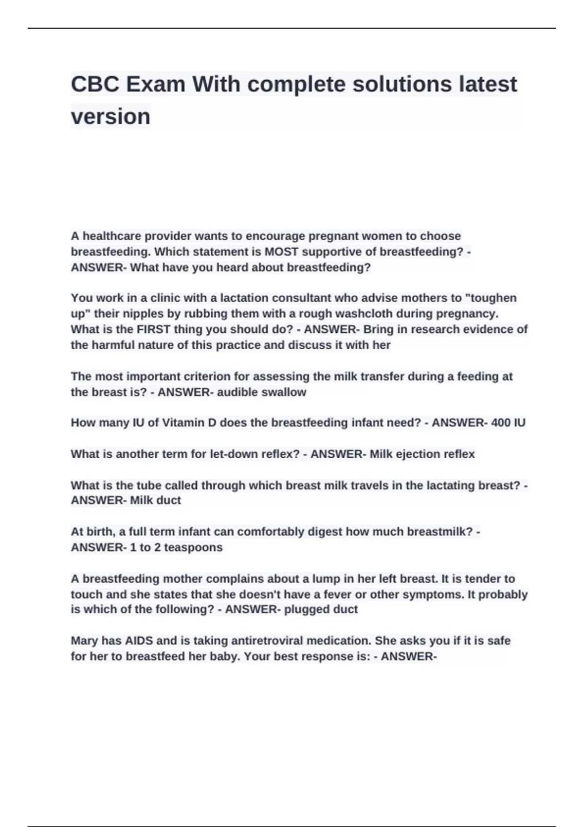 the breast is? - ANSWER- audible swallow