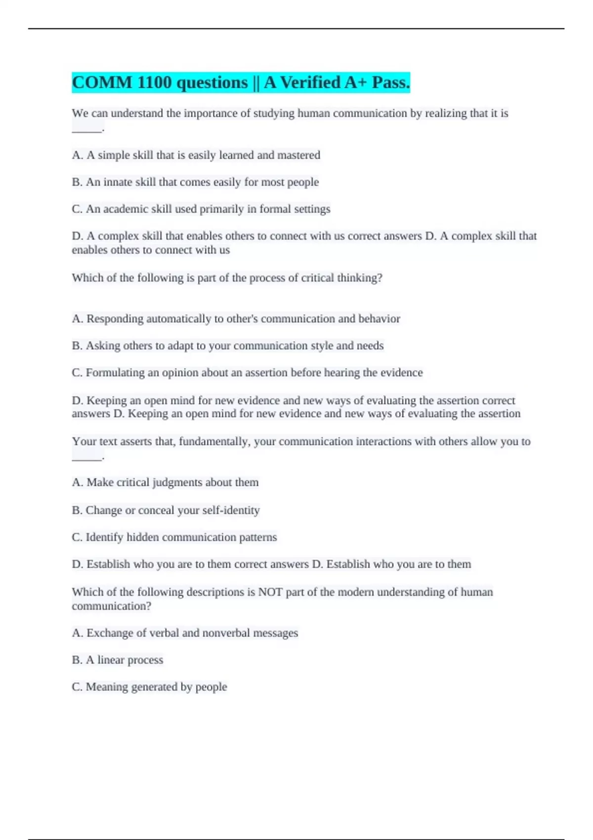 D. communication is a complex and transactional process correct answers B. messages are clear