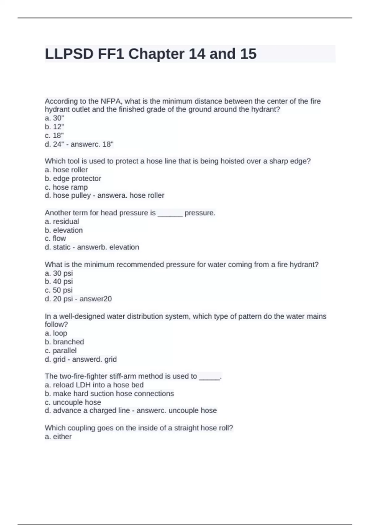 LLPSD FF1 Chapter 14 and 15 Questions and Answers 2024