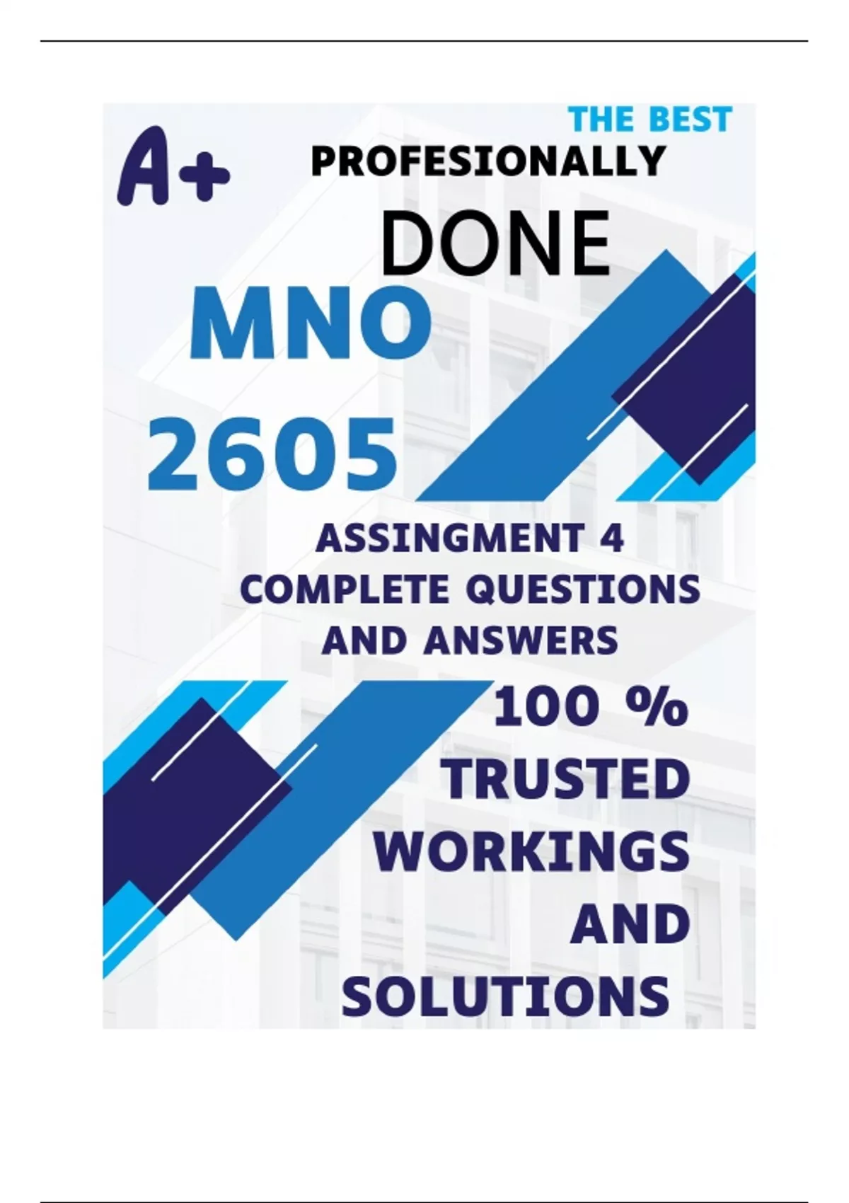 , MNO2605 Assignment 4 (COMPLETE ANSWERS)