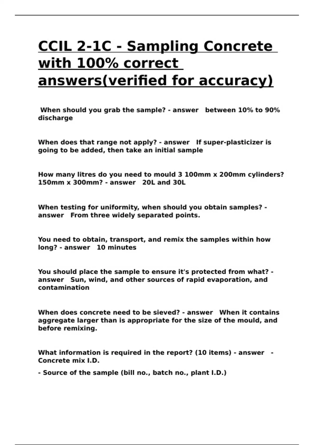CCIL Basic Concrete Certification (Type Q) with 100- correct answers(verified for accuracy).d