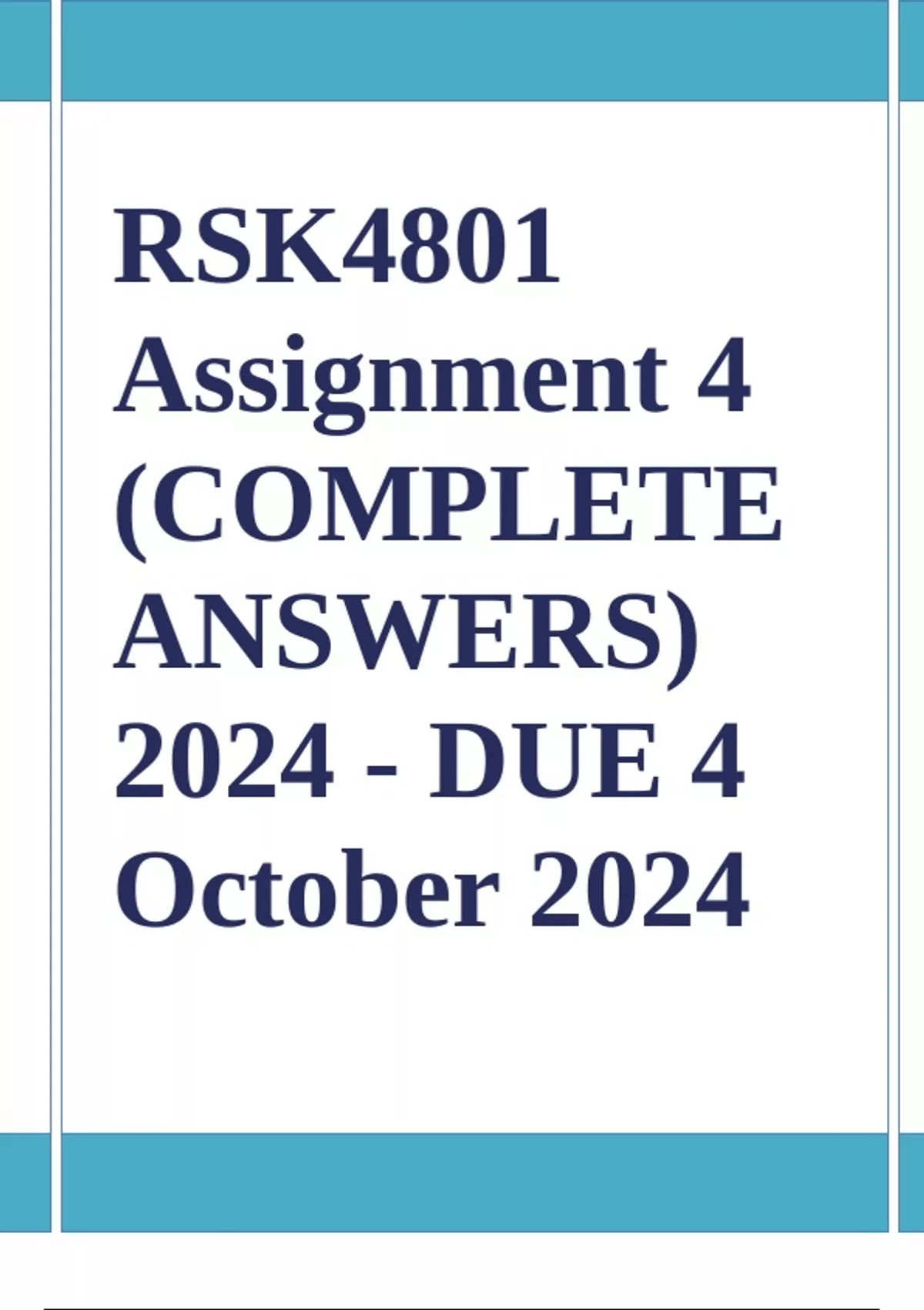 RSK4801 Assignment 4 (COMPLETE ANSWERS) 2024 - DUE 4 October