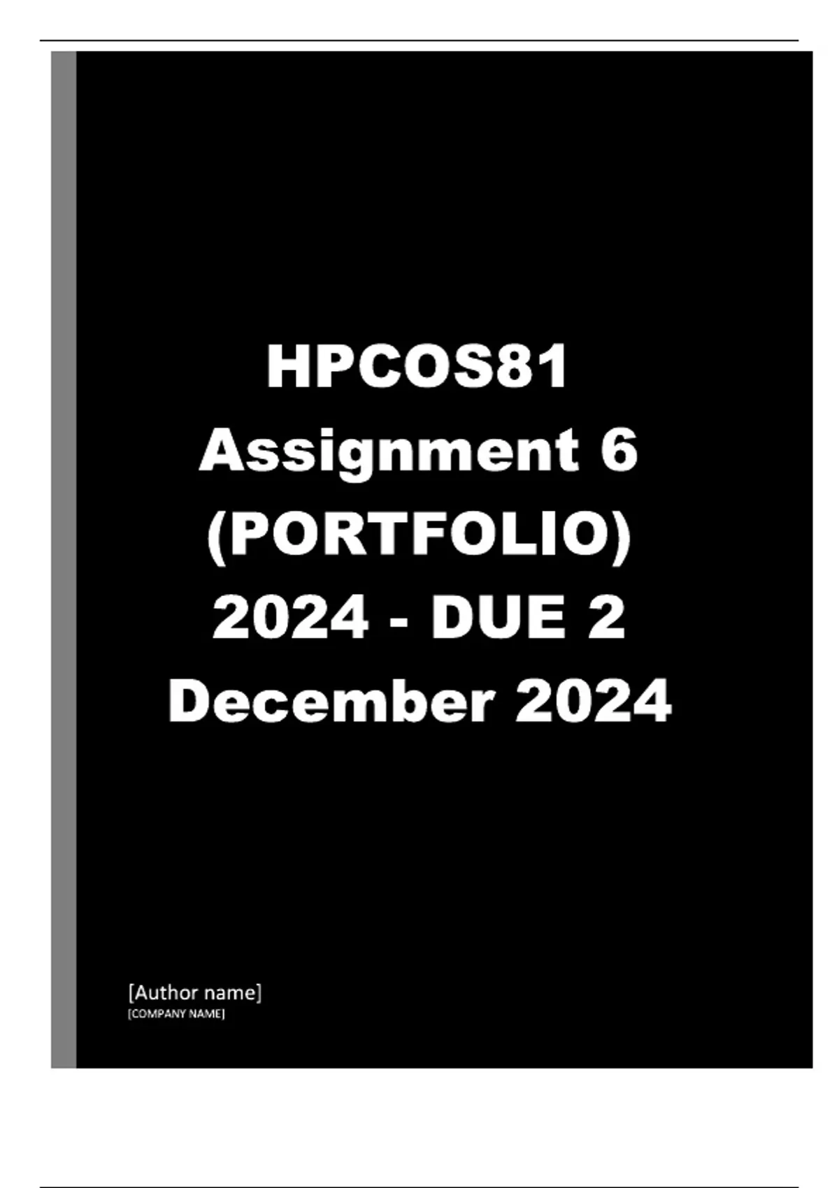 HPCOS81 Assignment 6 PORTFOLIO 2024 - DUE 2 December 2024 ;100 % TRUSTED workings, Expert Solved, Explanations and Solutions.