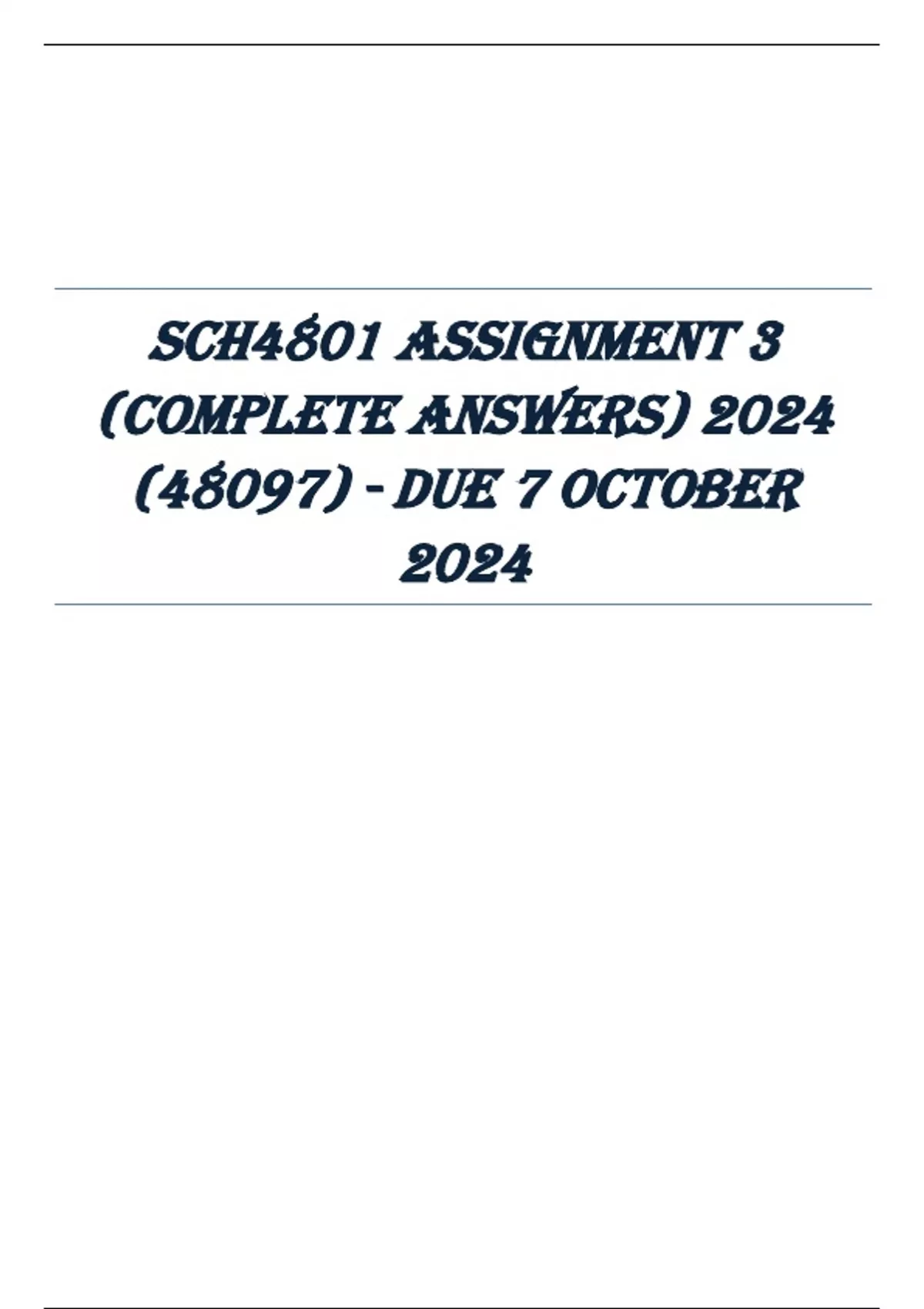 SCH4801 Assignment 3 (COMPLETE ANSWERS) 2024 (248097)- DUE 7 October 2024