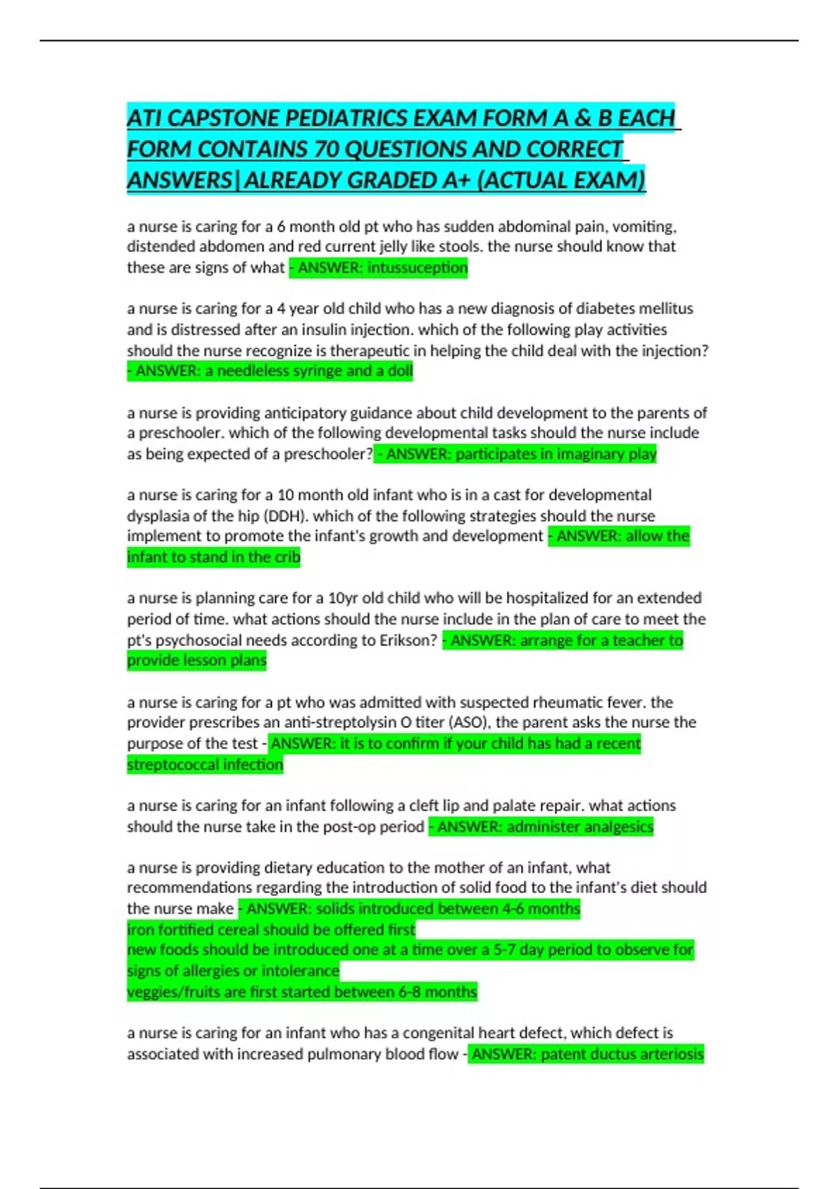 ATI CAPSTONE PEDIATRICS EXAM FORM A & B EACH