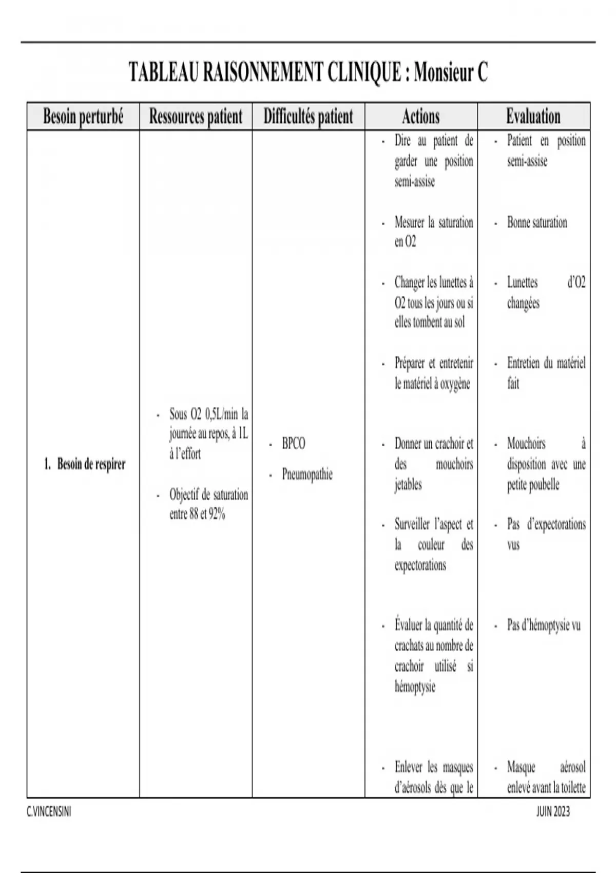 TABLEAU RAISONNEMENT CLINIQUE : Monsieur C