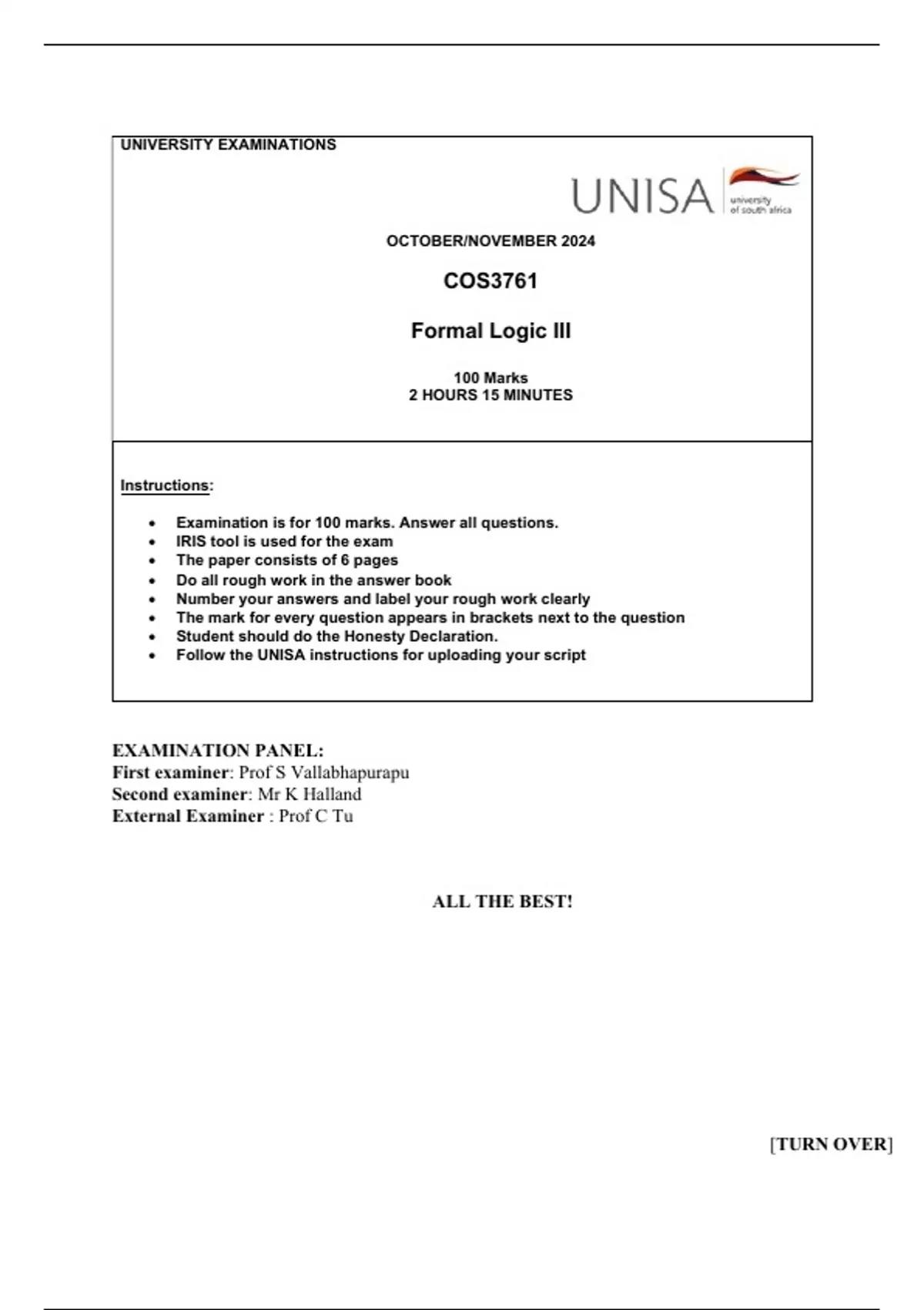 The exam paper for COS3761 October 2024 (Monday 21 October 2024) Based on 2021 Oct/Nov paper