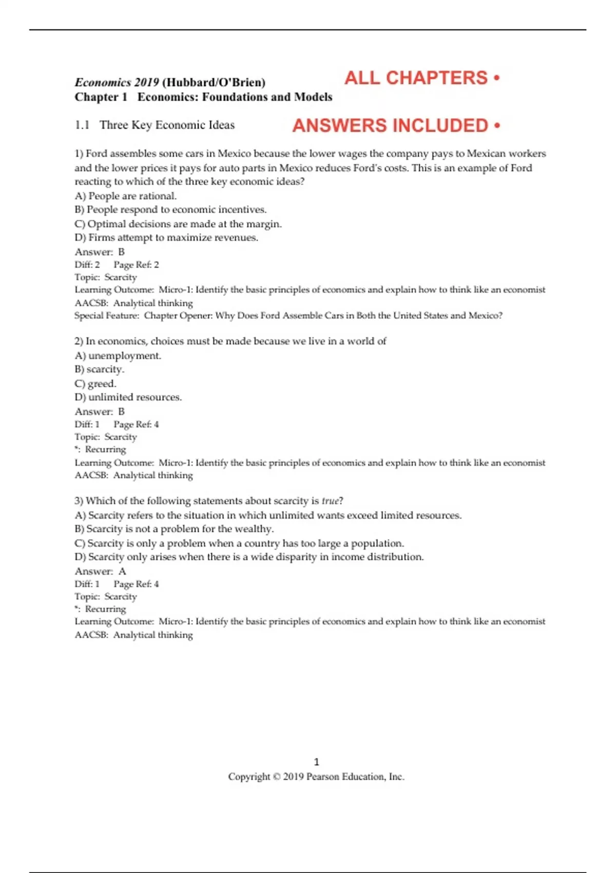 1.1 Three Key Economic Ideas ANSWERS INCLUDED •