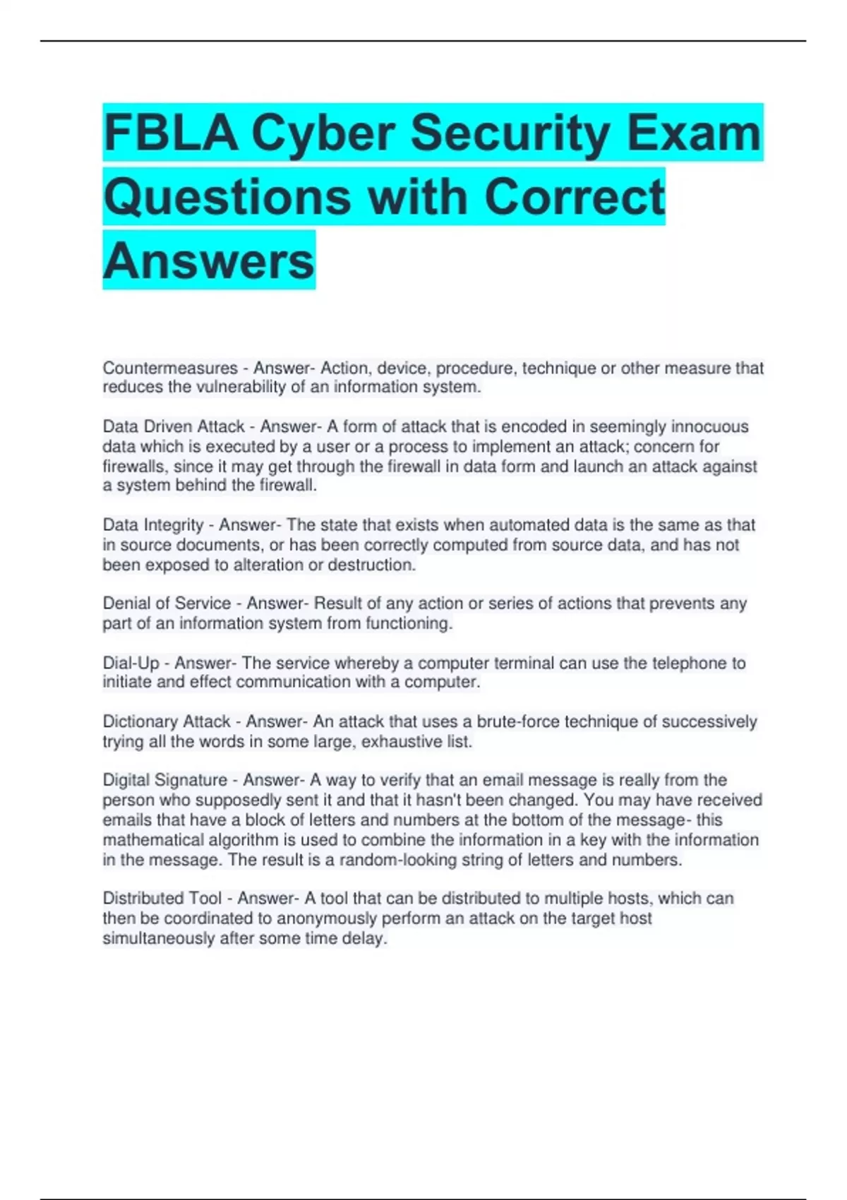 Dictionary Attack - Answer- An attack that uses a brute-force technique of successively