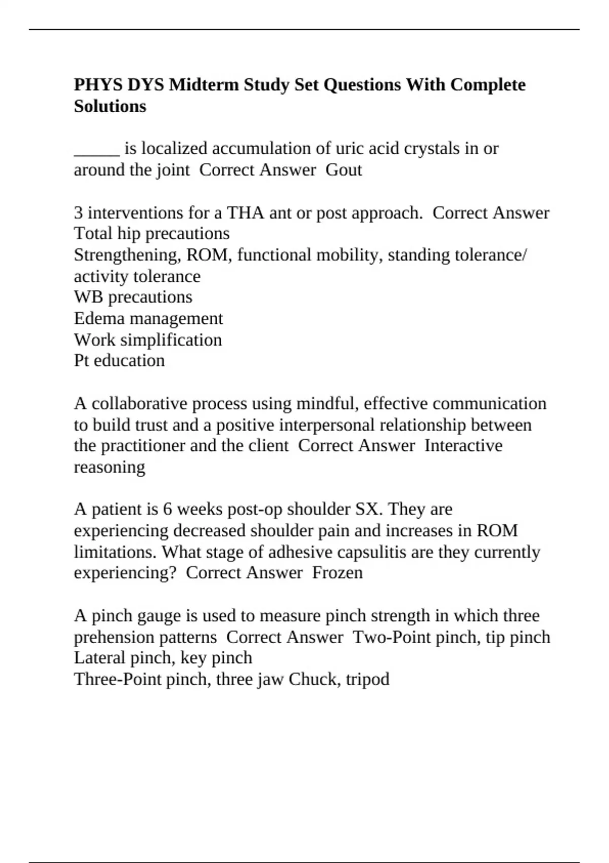 PHYS DYS Midterm Study Set Questions With Complete Solutions
