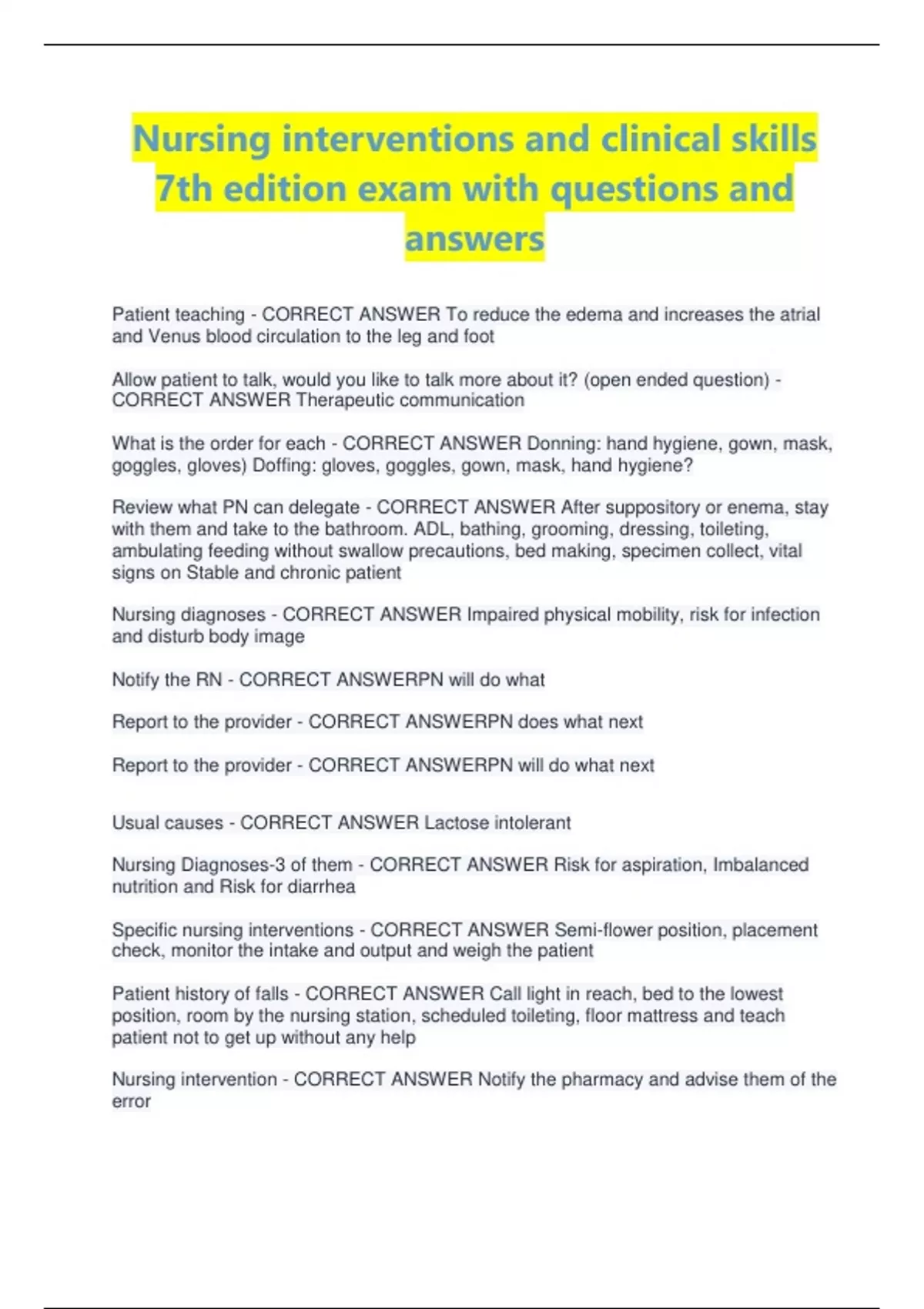 7th edition exam with questions and