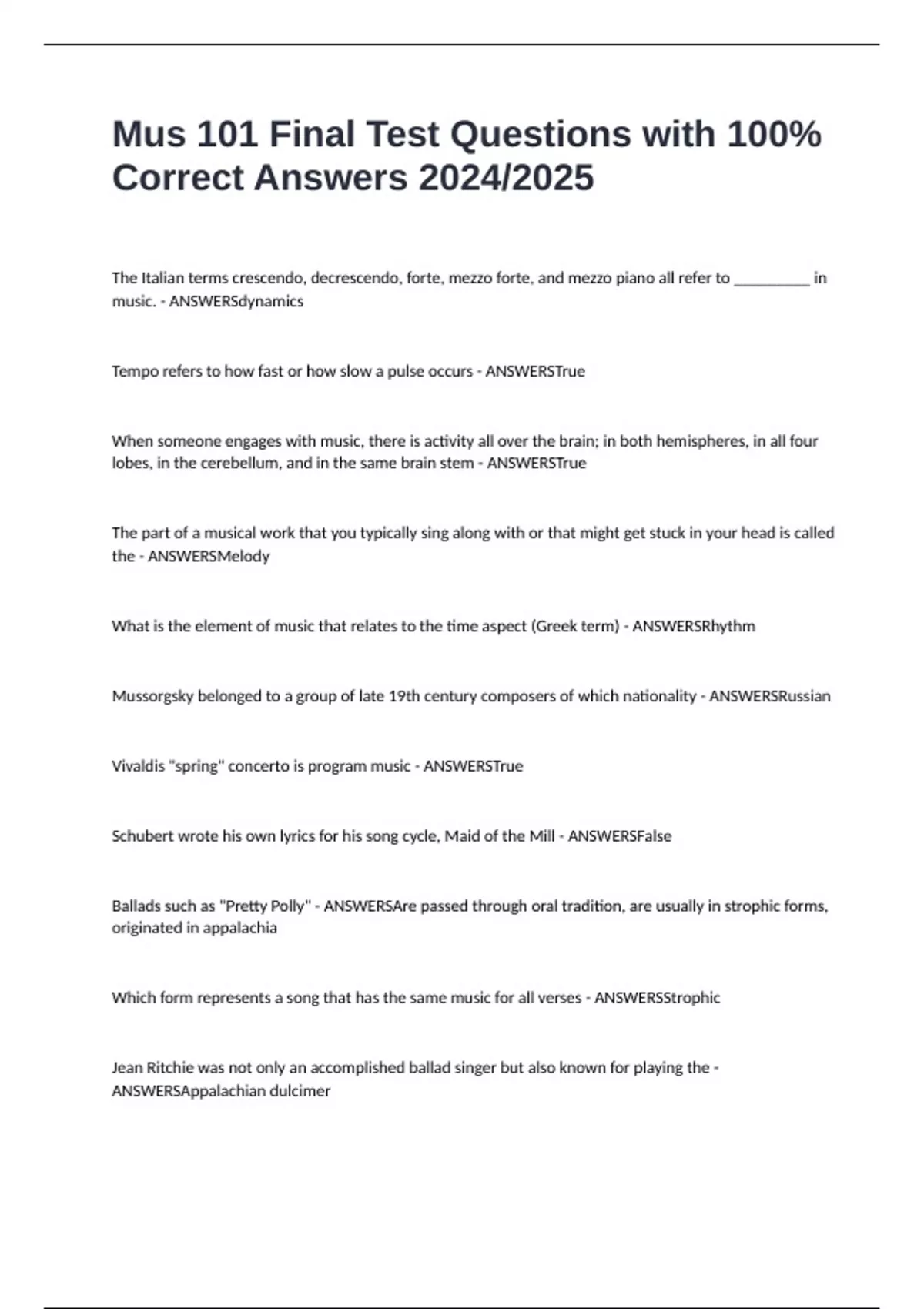 Mus 101 Final Test Questions with 100% Correct Answers 2024/2025