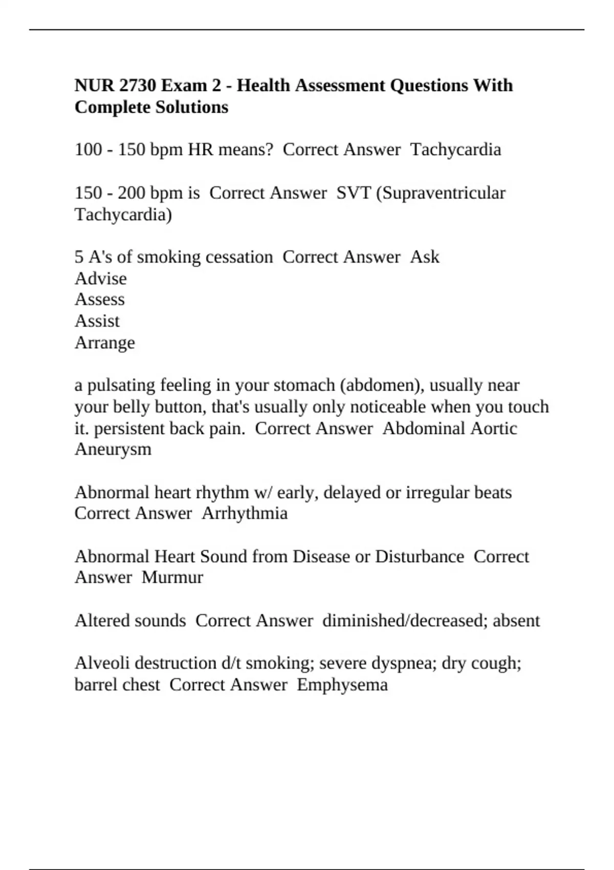 NUR 2730 Exam 2 - Health Assessment Questions With