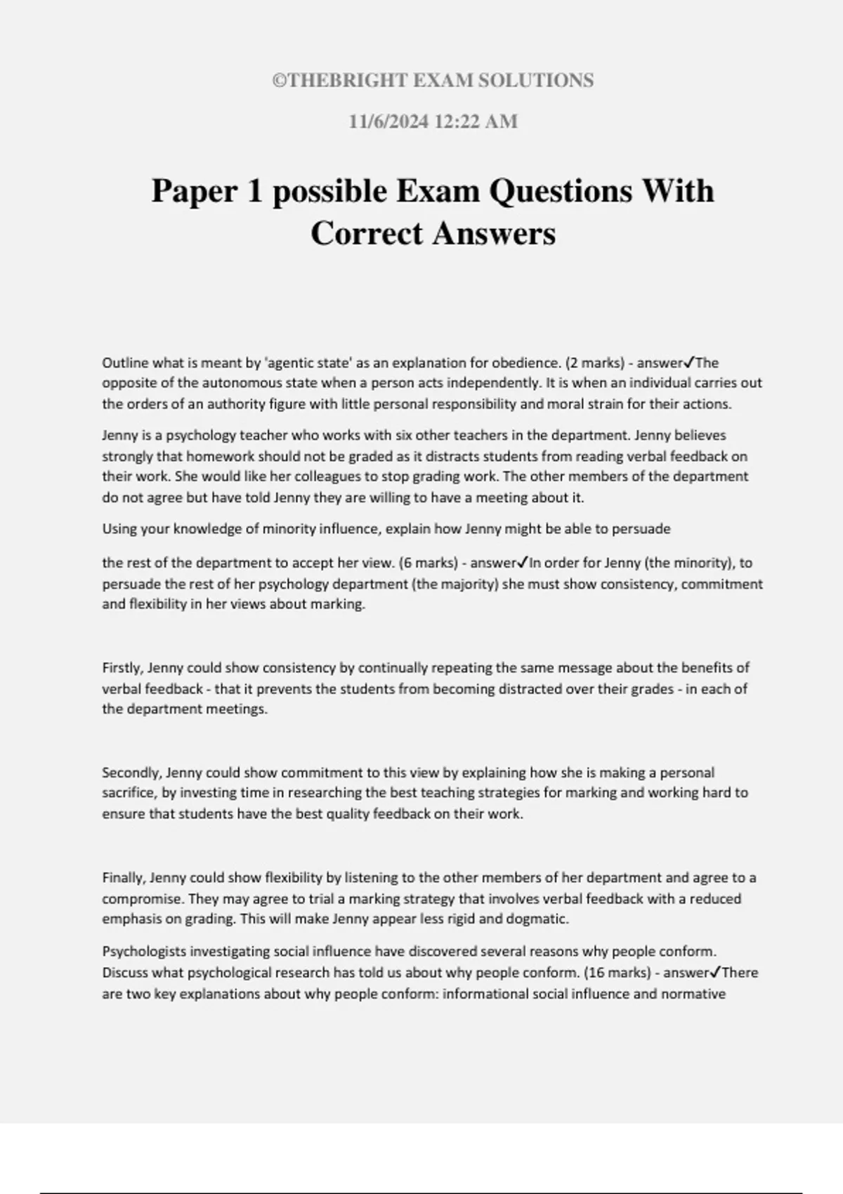 Discuss what psychological research has told us about why people conform. (16 marks) - answer✔There