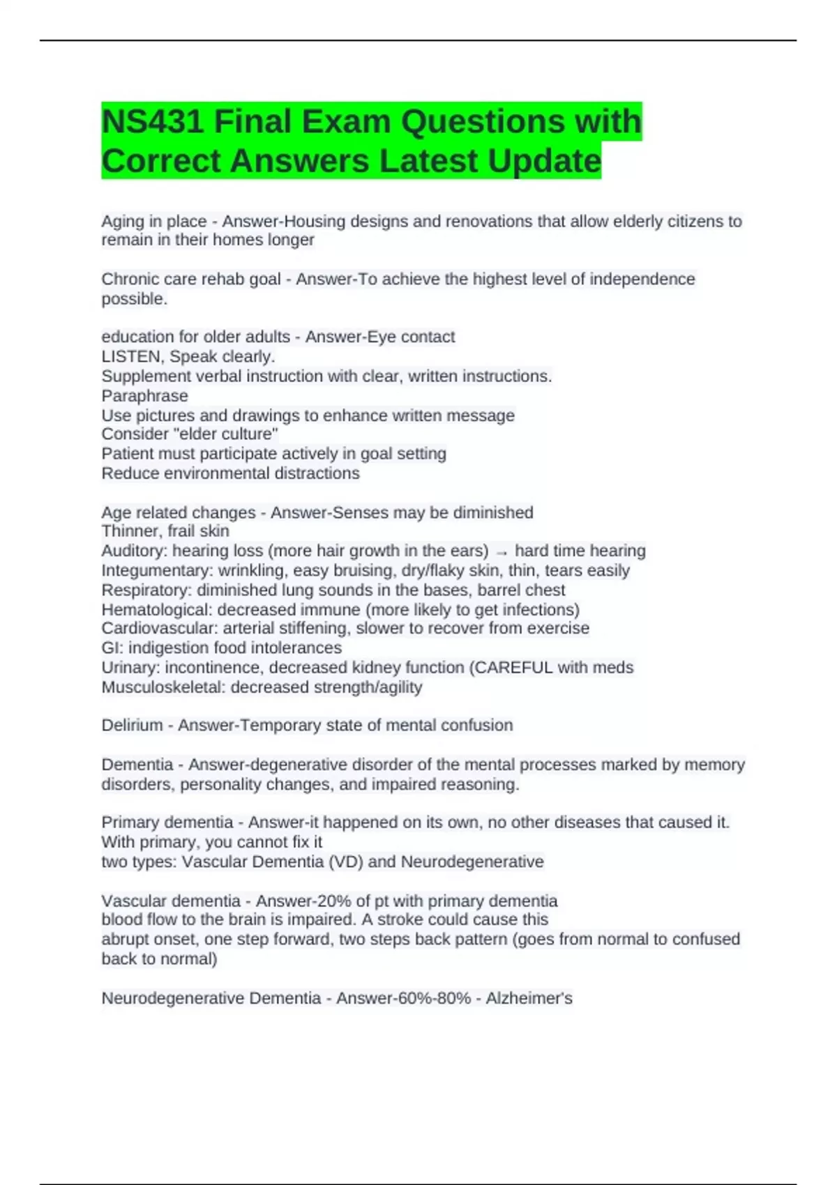 NS431 Final Exam Questions with Correct Answers Latest Update