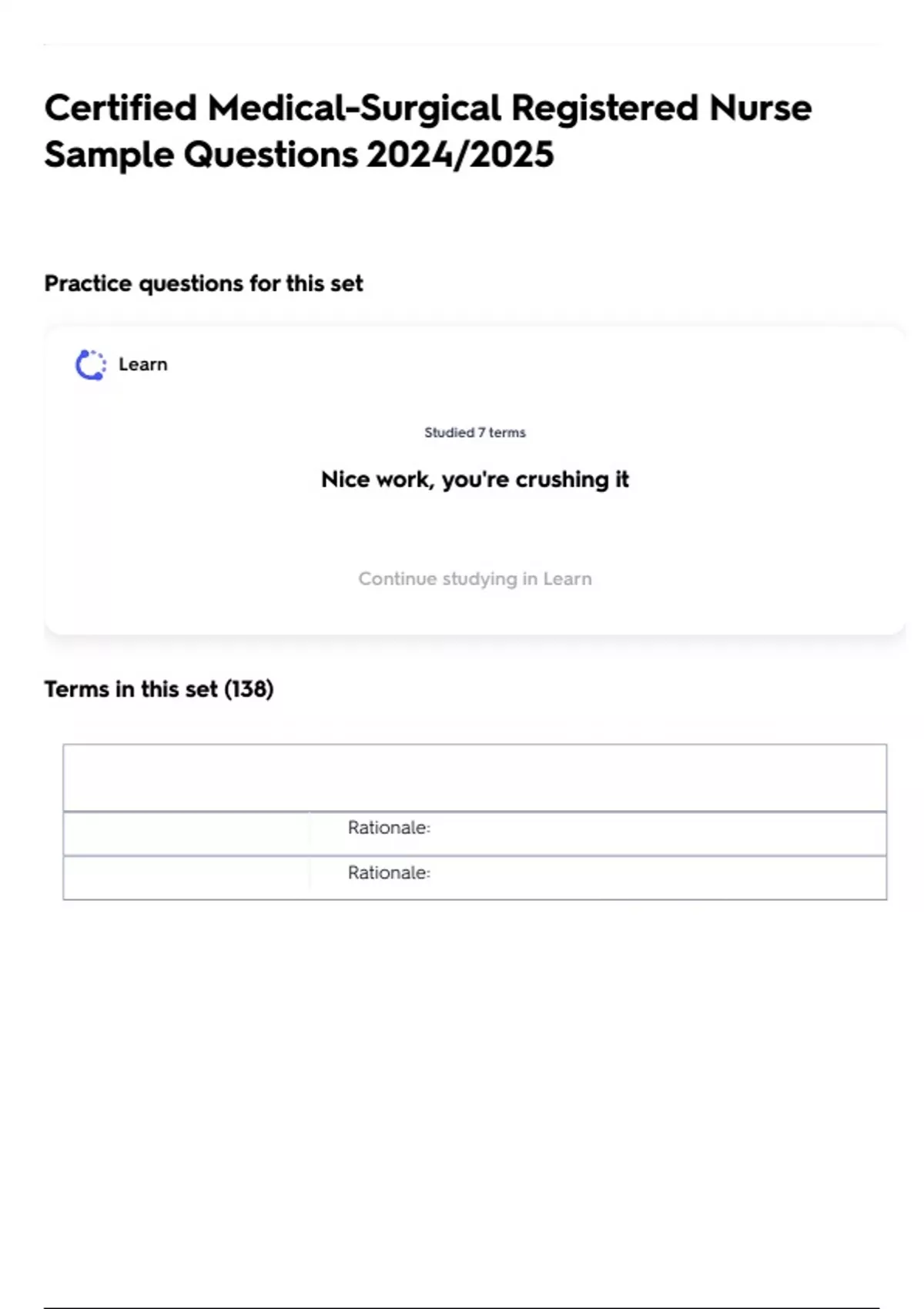 Certified Medical-Surgical Registered Nurse Sample Questions 2024/2025