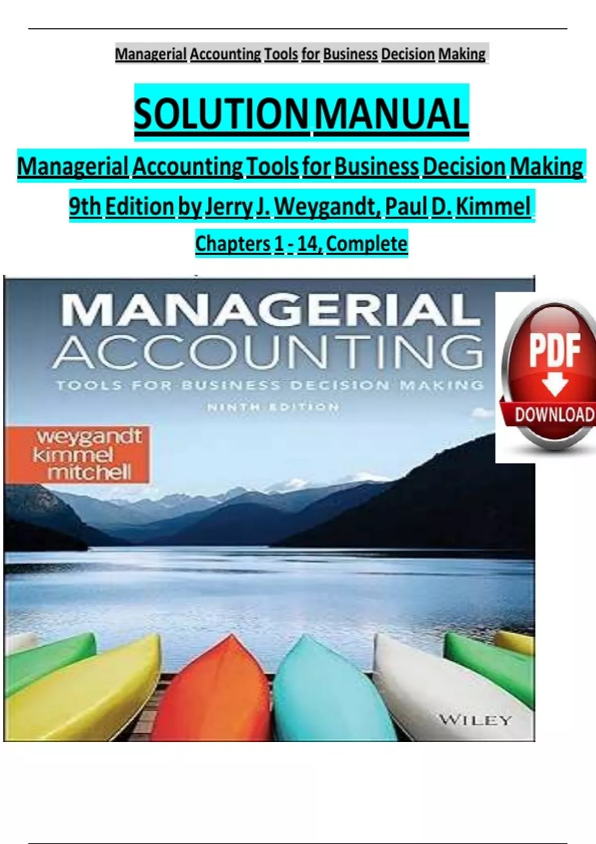 SOLUTION MANUAL Managerial Accounting Tools for Business Decision Making 9th Edition by Jerry J. Weygandt, Paul D. Kimmel Chapters 1 - 14, CompleteSOLUTION MANUAL Managerial Accounting Tools for Business Decision Making 9th Edition by Jerry J. Weygandt