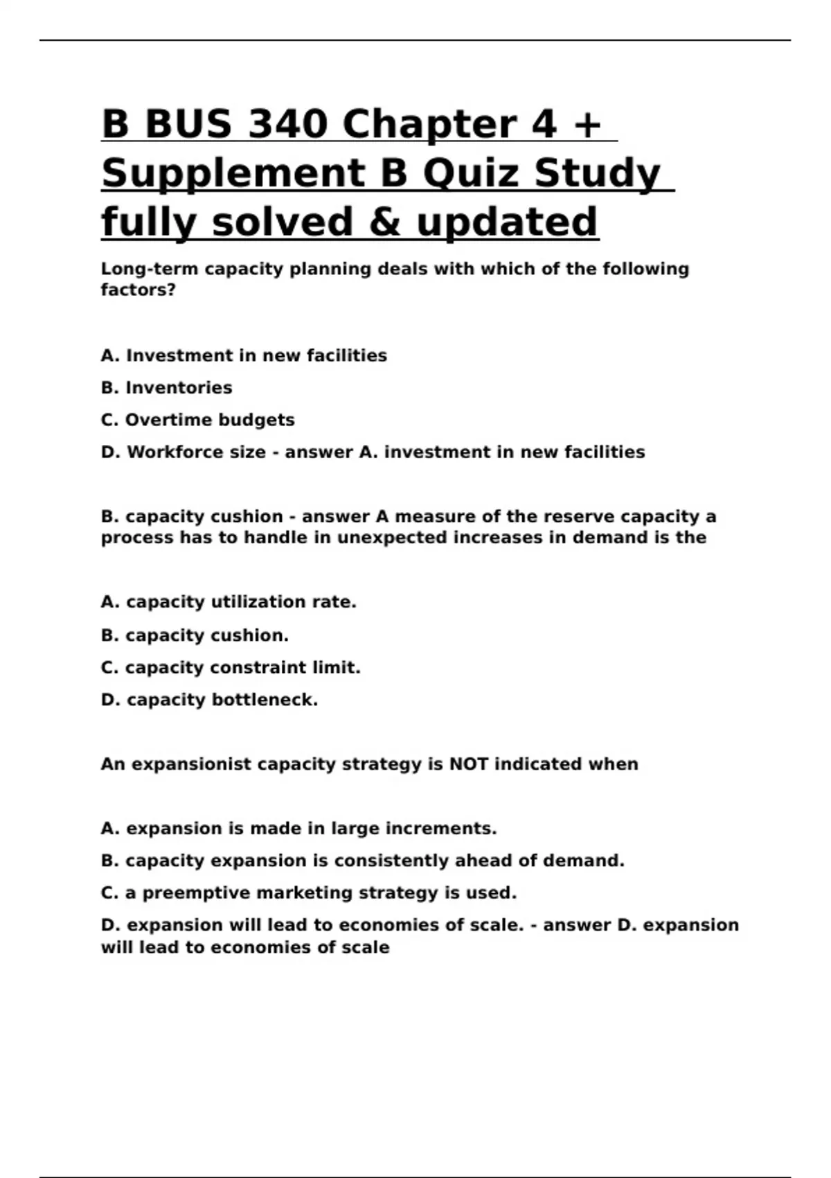 B BUS 340 Chapter 4 + Supplement B Quiz Study fully solved & updated.