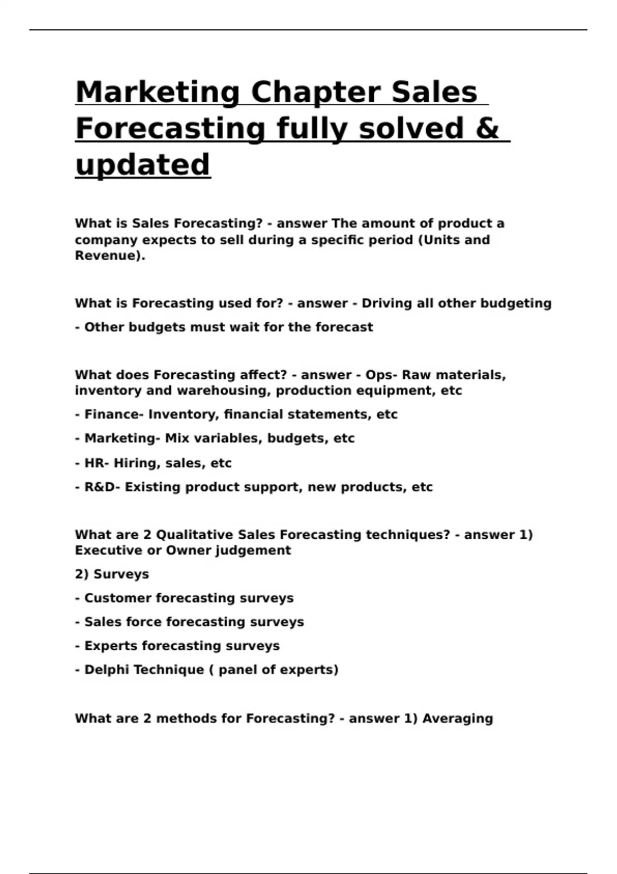 Marketing Chapter Sales Forecasting fully solved & updated.