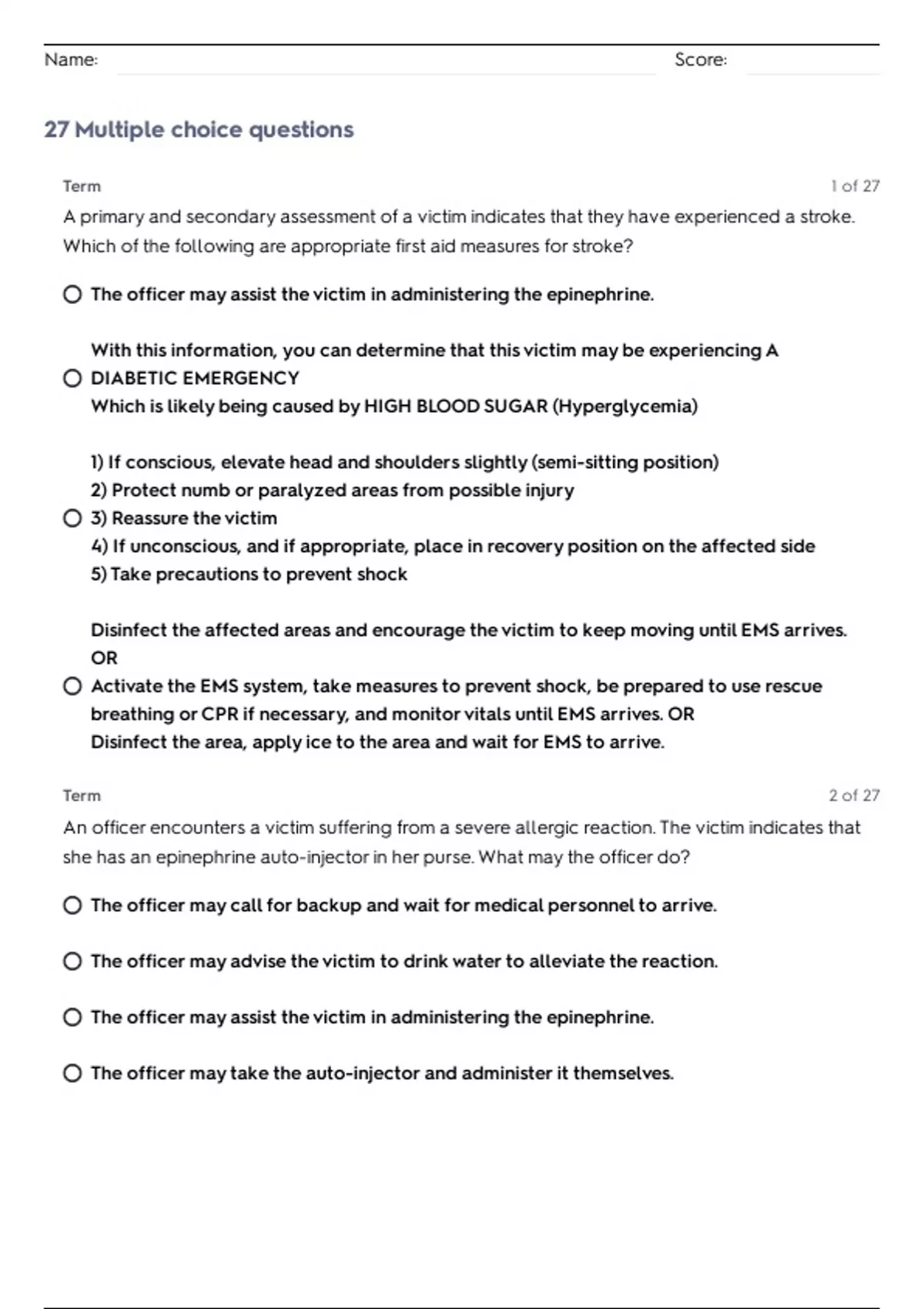 Name: Score: