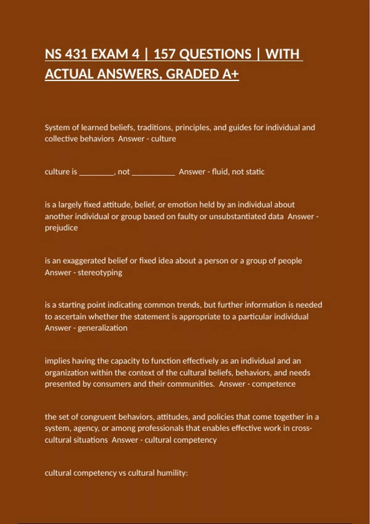 NS 431 EXAM 4 | 157 QUESTIONS | WITH ACTUAL ANSWERS, GRADED A+