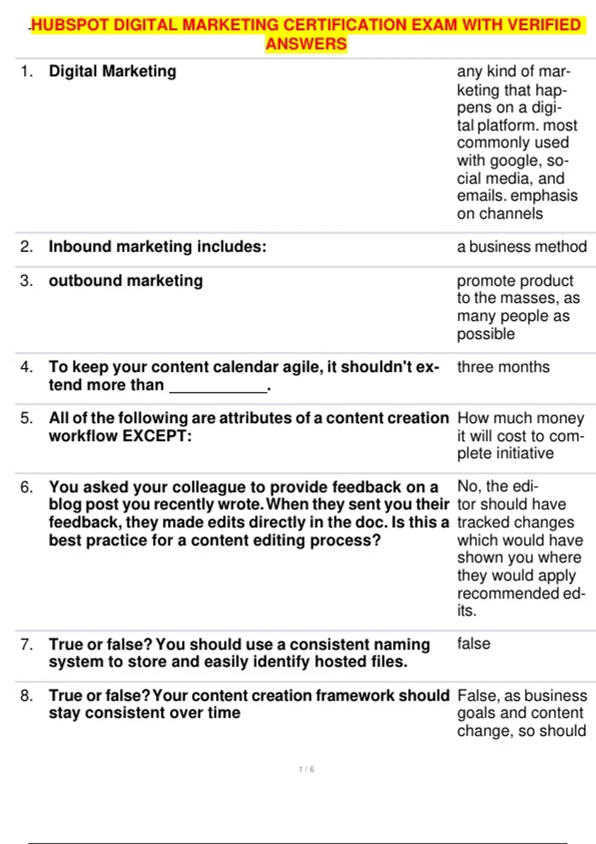 HUBSPOT DIGITAL MARKETING CERTIFICATION EXAM WITH VERIFIED ANSWERS 1. Digital Marketing any kind of mar- keting that hap- pens on a digi- tal platform. most commonly used with google, so- cial media, and emails. emphasis on channels 2. Inbound marketing includes: a business m