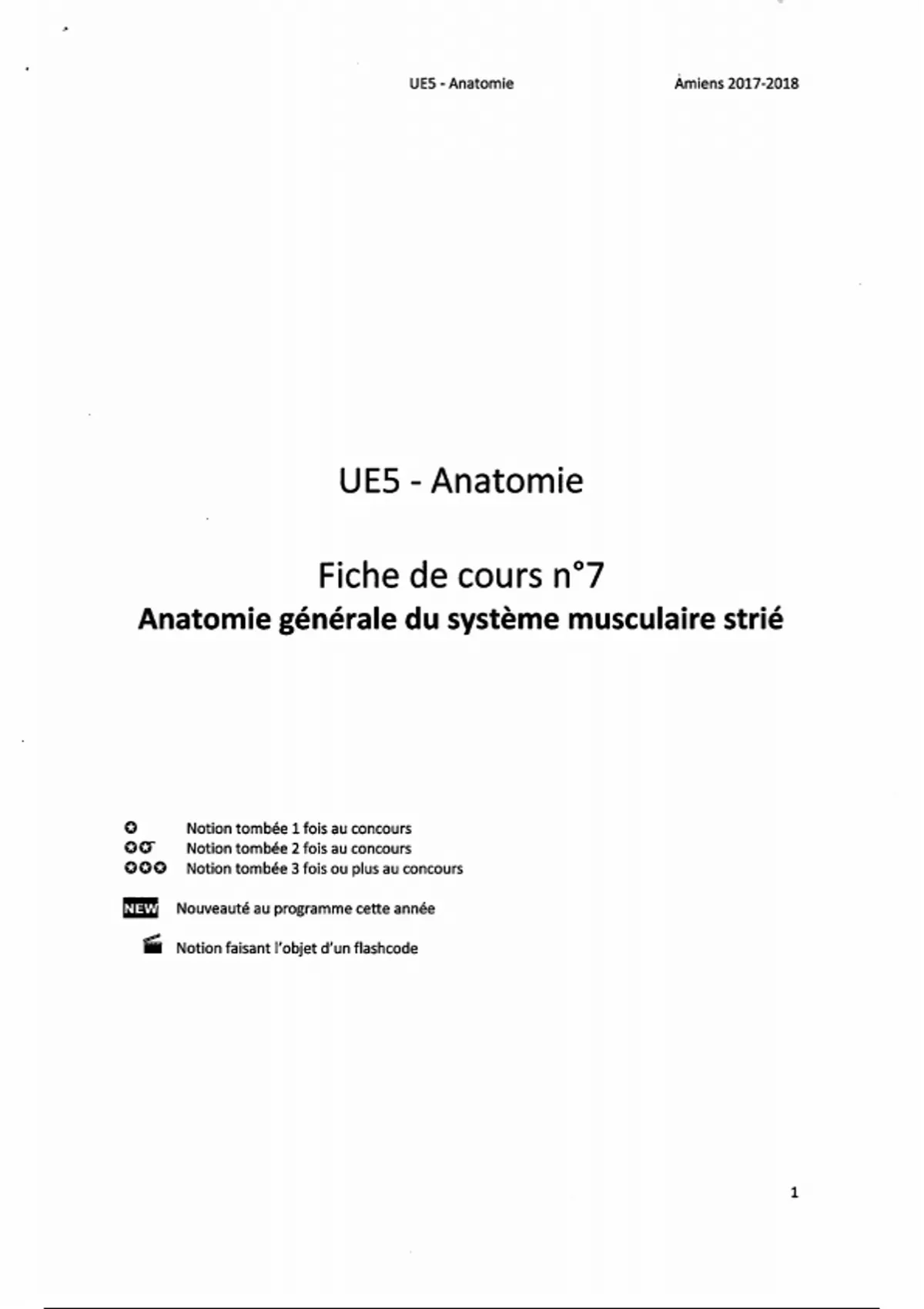 UE5 FC7 - Anatomie générale du système musculaire strié + Annales classées corrigées
