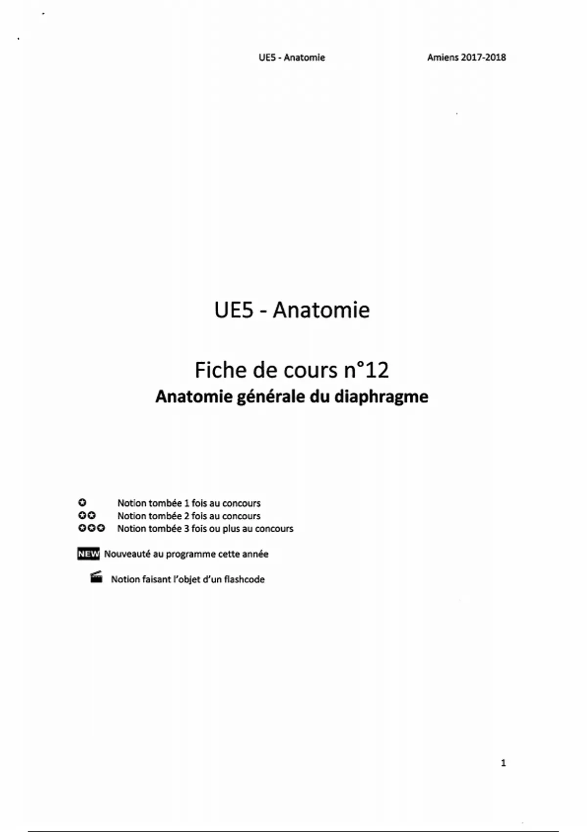 UE5 FC12 - Anatomie générale du système diaphragme + Annales classées corrigées