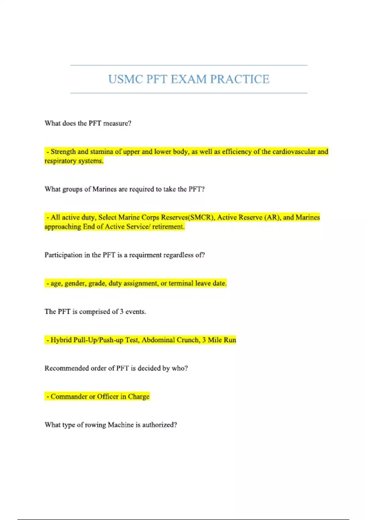 USMC PFT EXAM PRACTICE QUESTIONS WITH COMPLETE ANSWERS