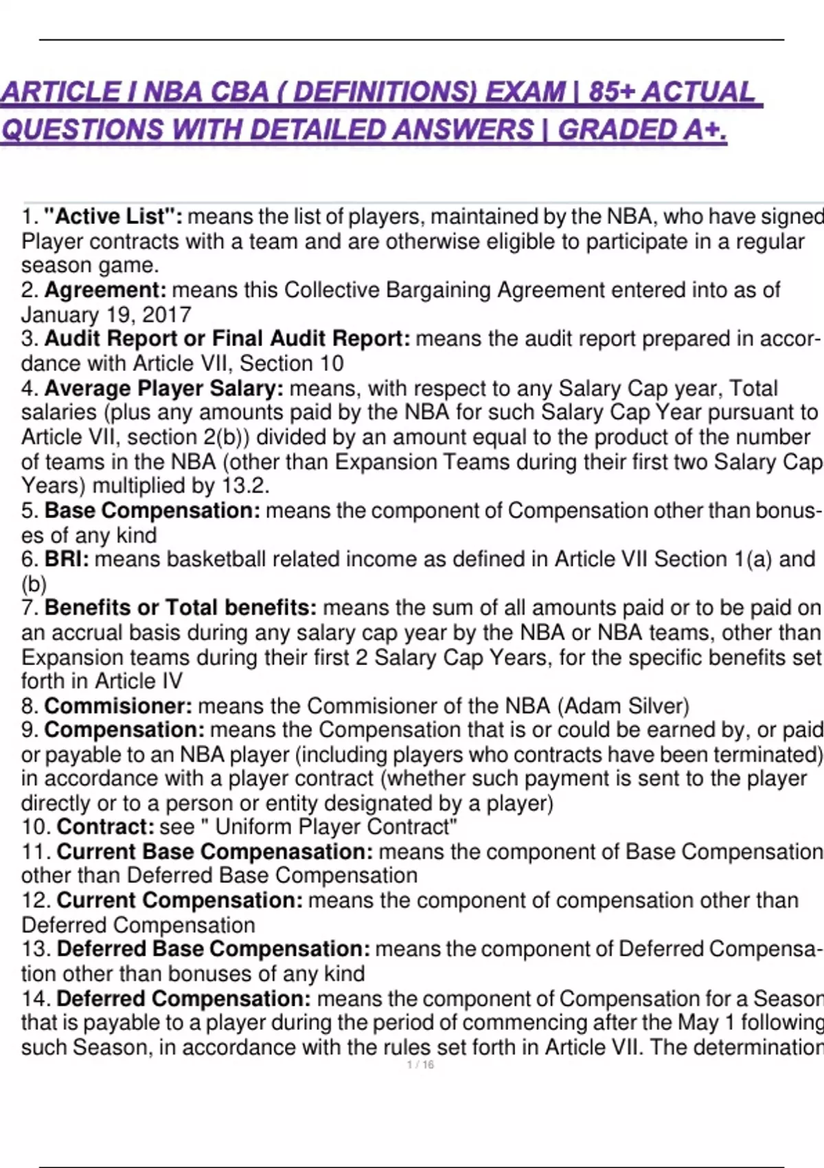 8. Commisioner: means the Commisioner of the NBA (Adam Silver)