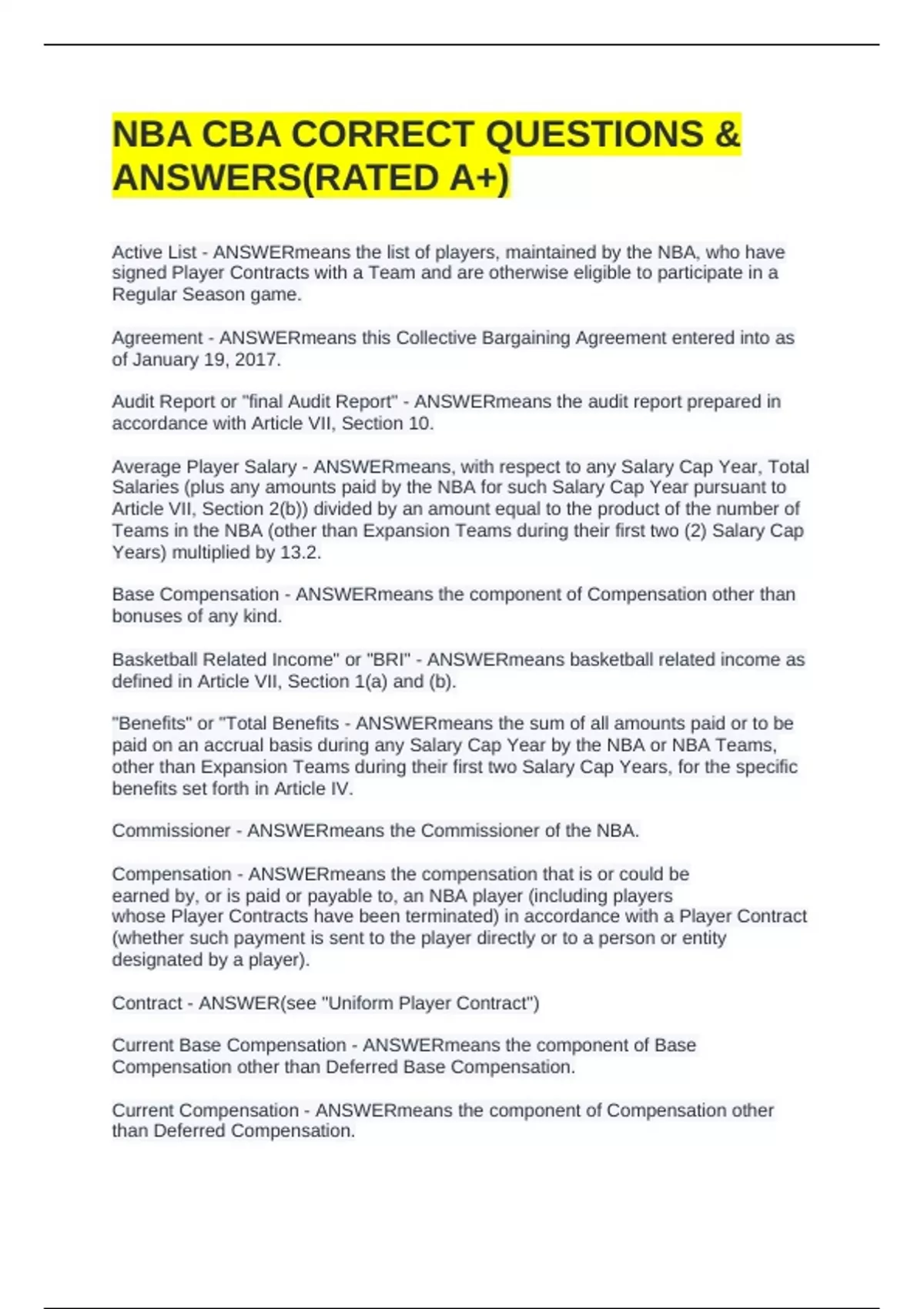Compensation - ANSWERmeans the compensation that is or could be