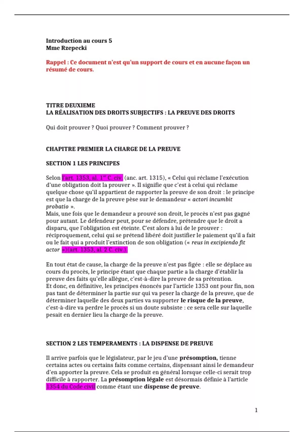 Et donc, en définitive, les principes énoncés par l’article 1353 ont pour fin, non