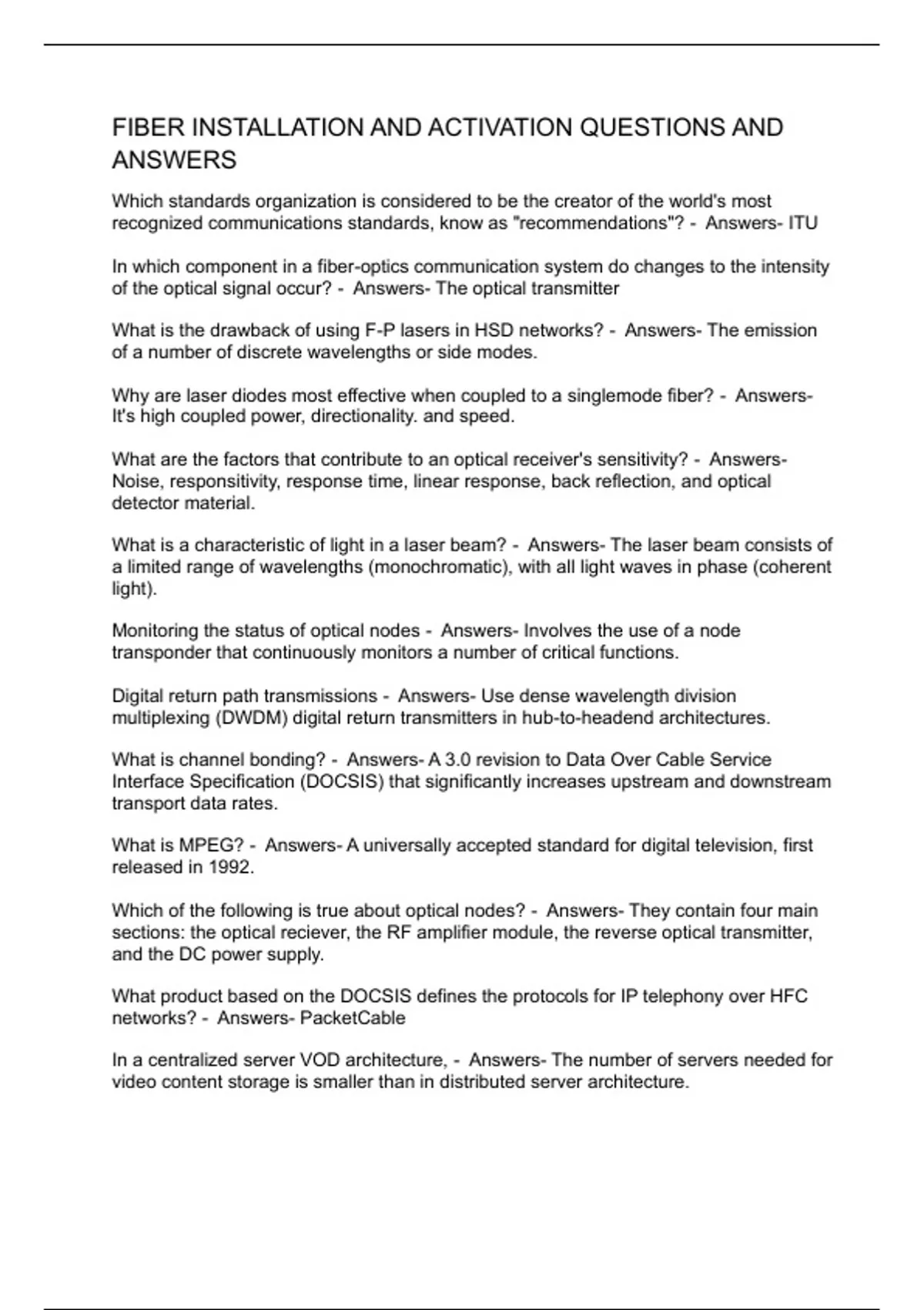 FIBER INSTALLATION AND ACTIVATION QUESTIONS AND